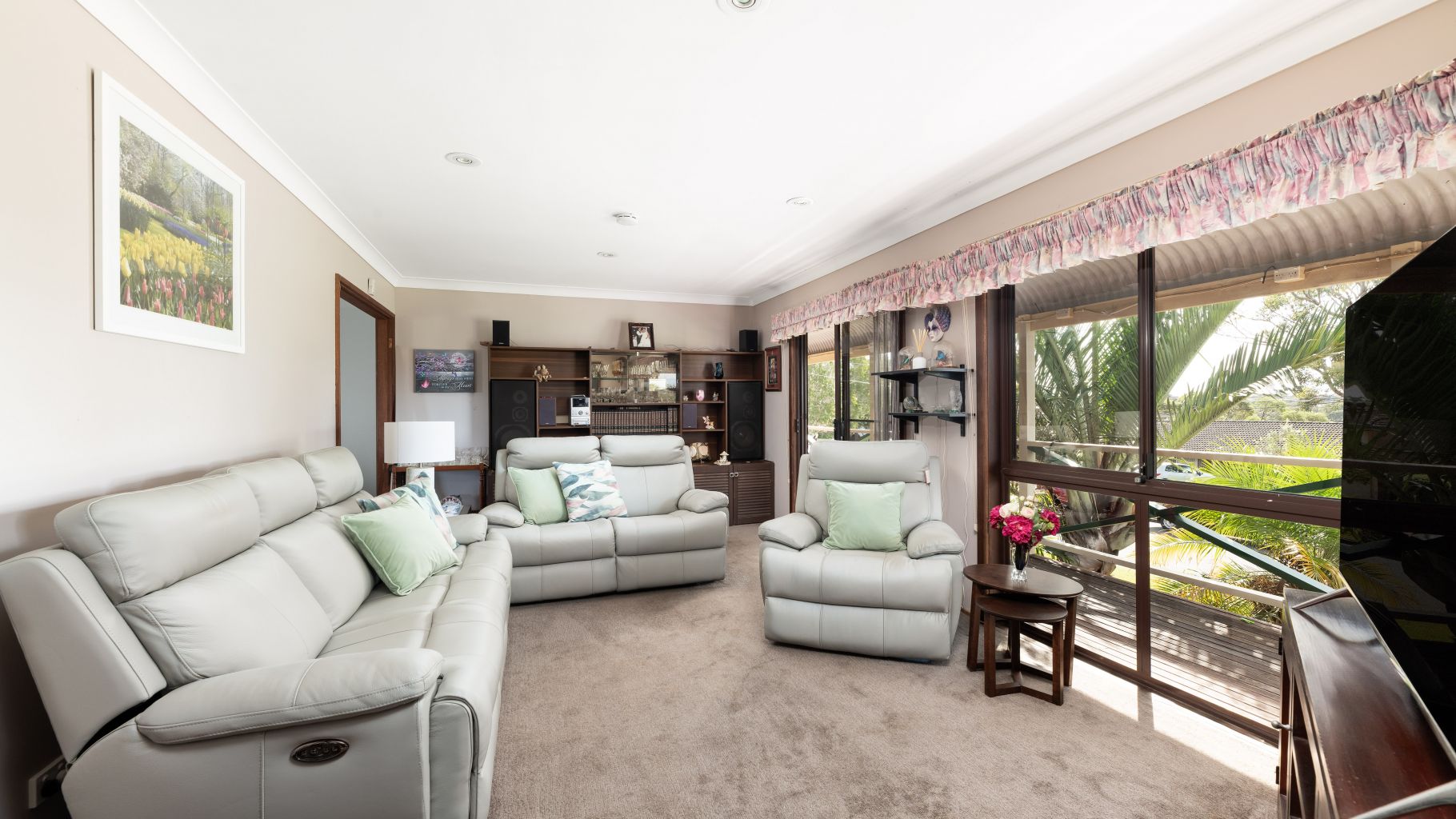 - Second living area is located downstairs, opening onto a covered alfresco entertaining zone overlooking the sparkling inground pool and level lawn, framed by lush, established gardens.