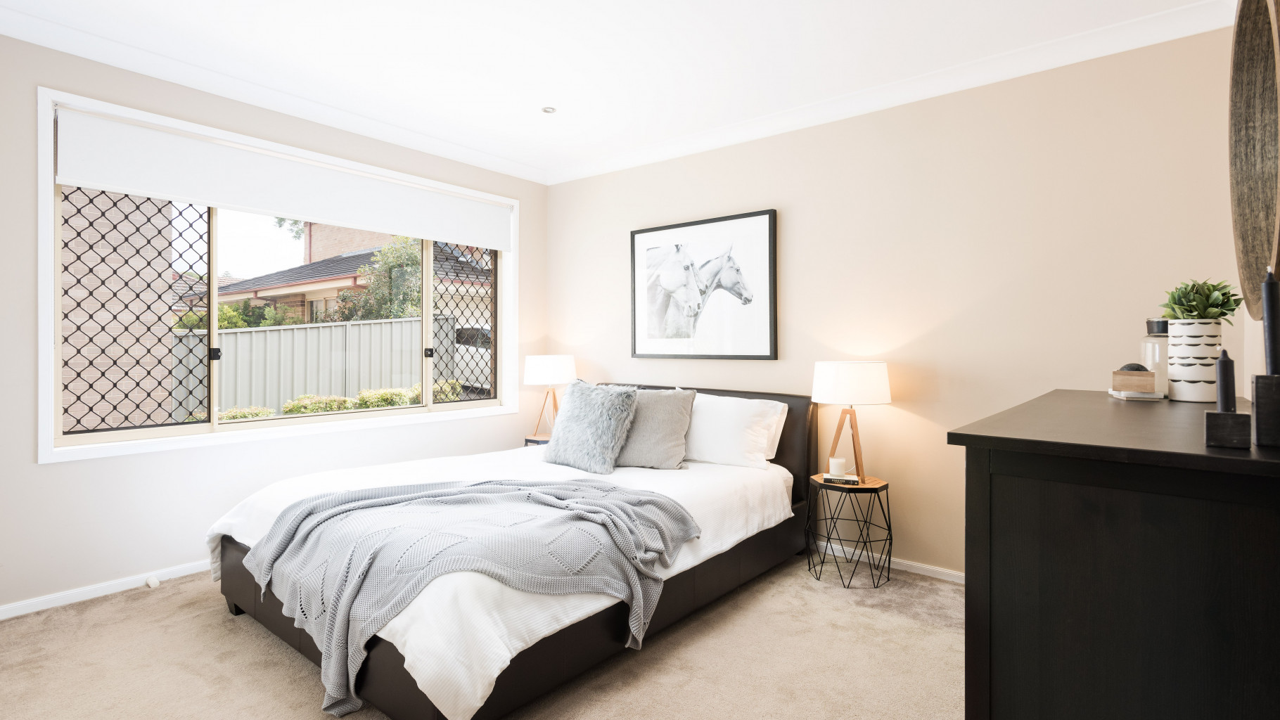 - 2 good sized bedrooms with carpet, main with mirrored built-in wardrobe