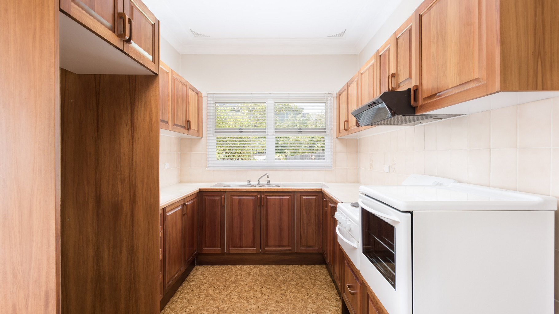 - Neat timber kitchen with an abundance of cupboard and bench space, huge pantry and servery window into the dining room