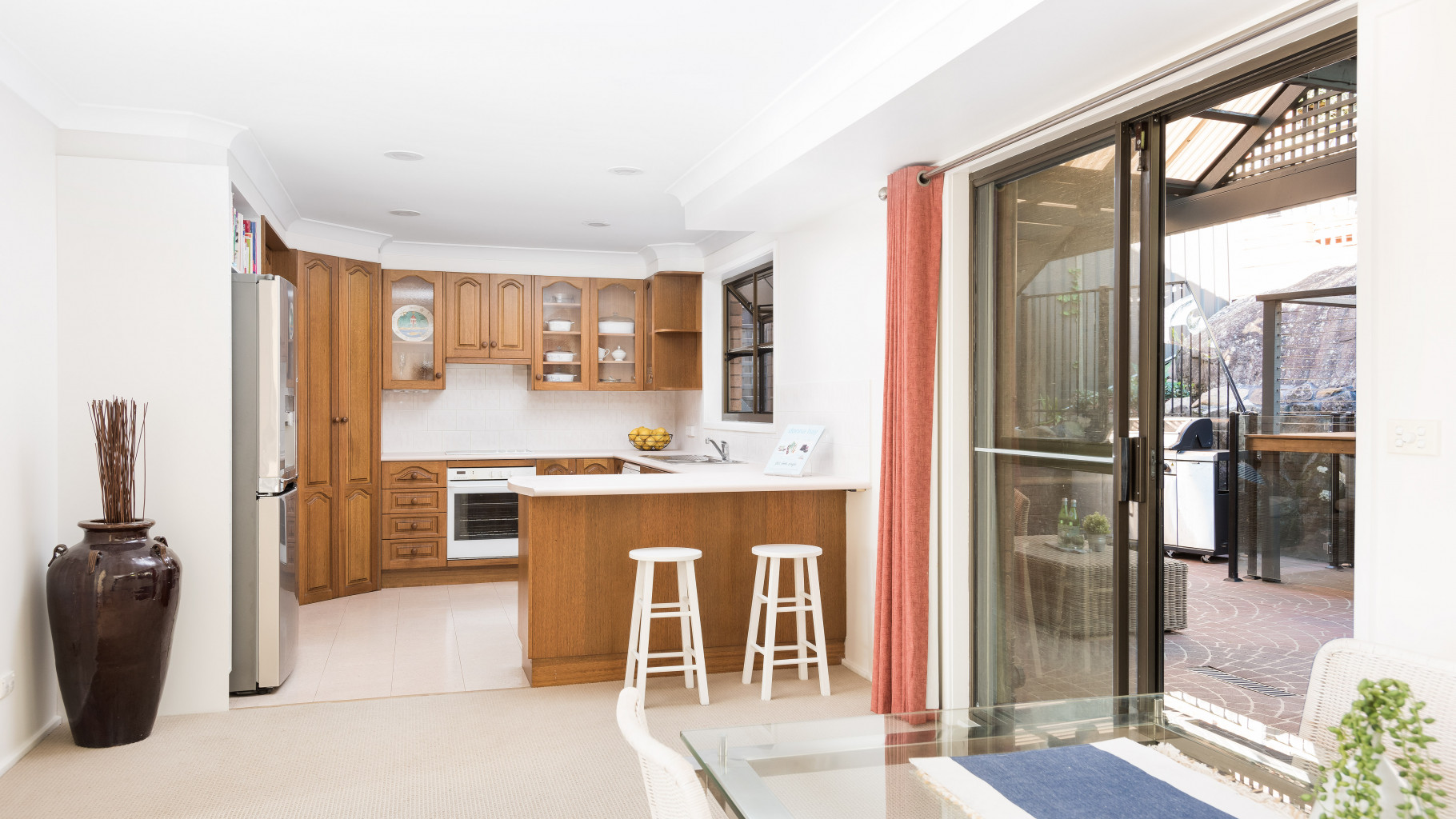 - Great sized kitchen with electric cooking, ample cupboard storage, and overlooks the covered entertaining space