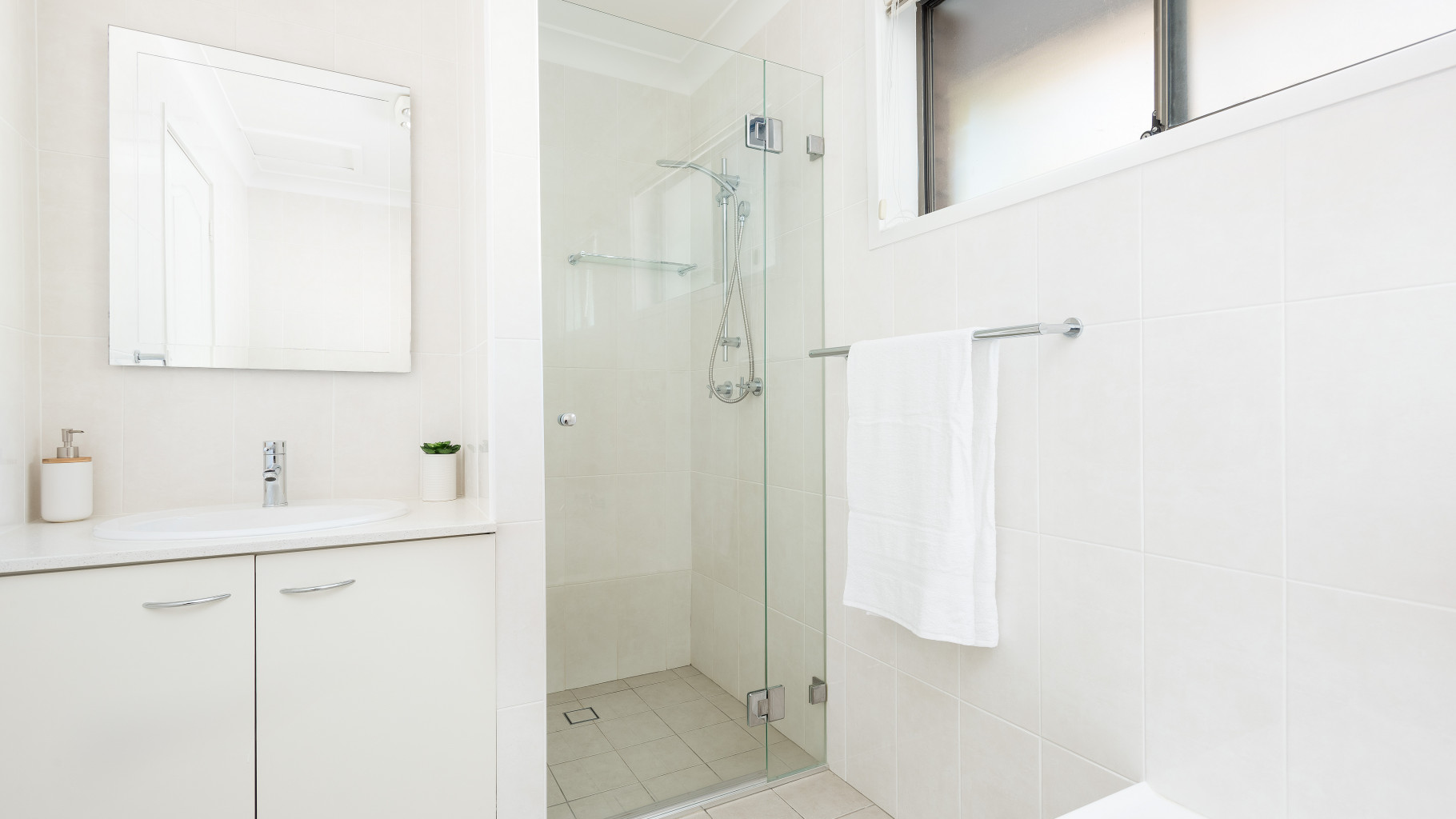 - Main bathroom with separate bath to shower, floor to ceiling tiles, additional toilet in the internal laundry