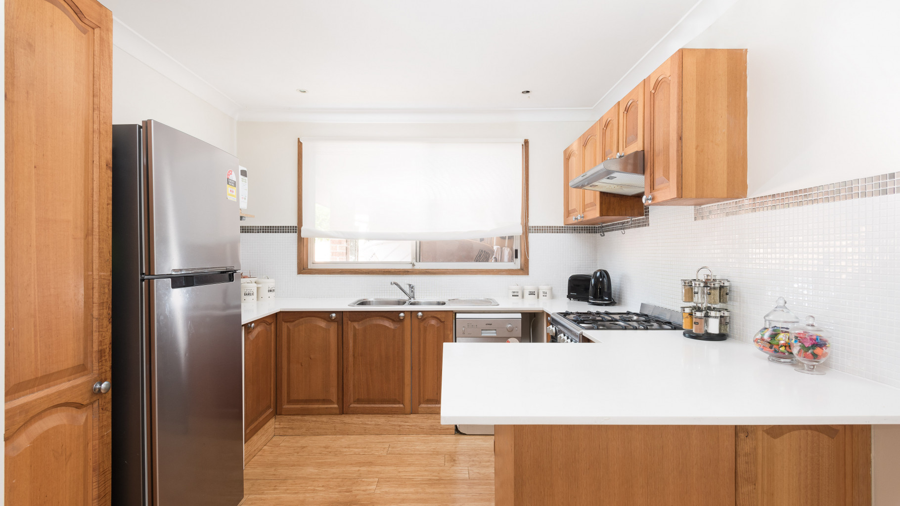 - Perfectly kept timber kitchen, hosting a dishwasher and ample cupboard and bench space