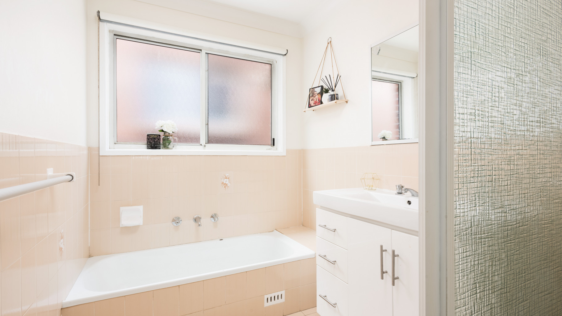 - Neat and tidy family bathroom offering a separate bath tub and shower