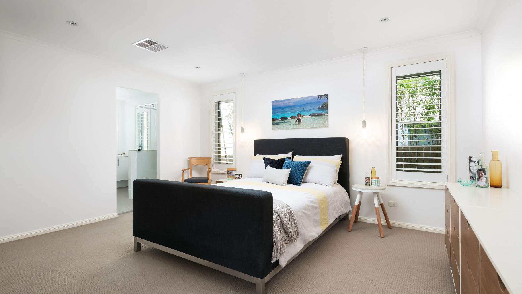 - Three comfortable bedrooms with built in wardrobes and plantation shutters. The extra-large master bedroom features a walk in wardrobe and an en-suite. Optional 4th bedroom or study area