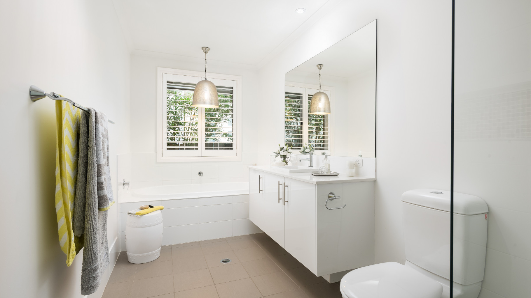 - Luxurious family bathroom, faultlessly styled with appealing fixtures and fittings