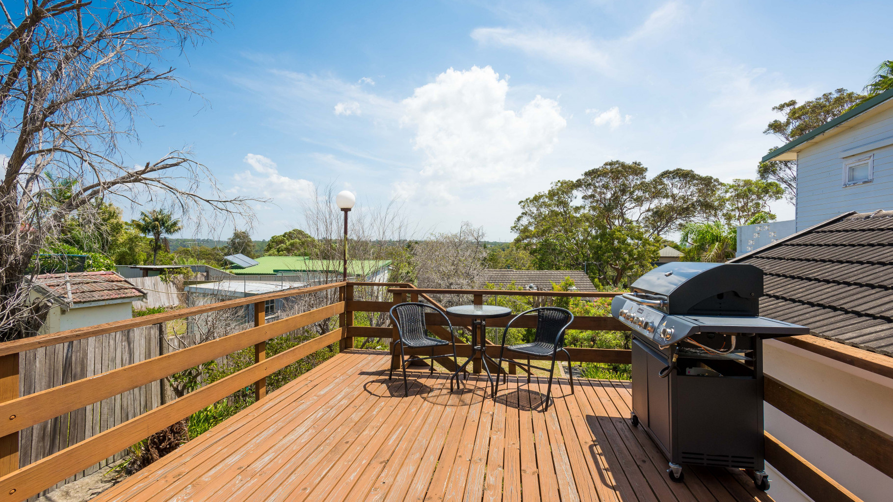 - Sun drenched entertaining deck overlooks the grassed backyard, surrounded by established trees and gardens