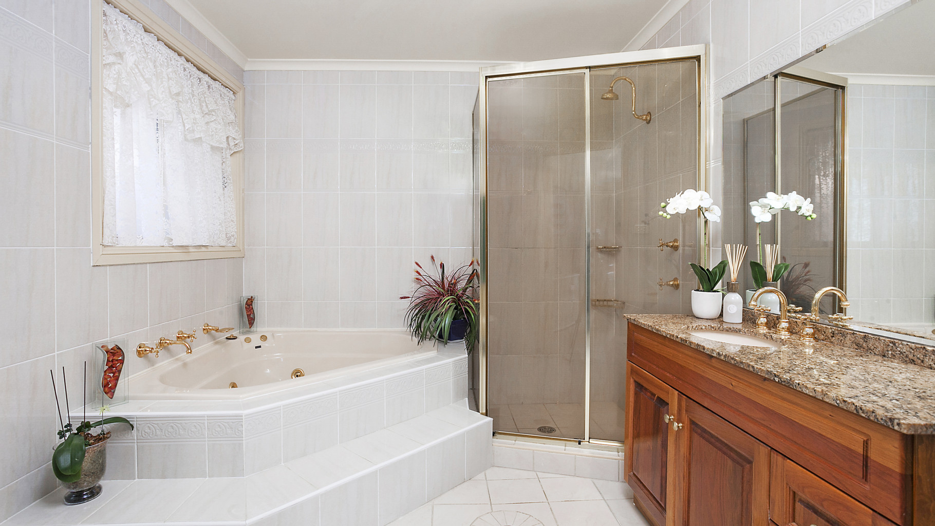 - Neatly presented and well maintained main bathroom with floor to ceiling tiling, modern vanity, deep spa bath and shower, toilet separate
