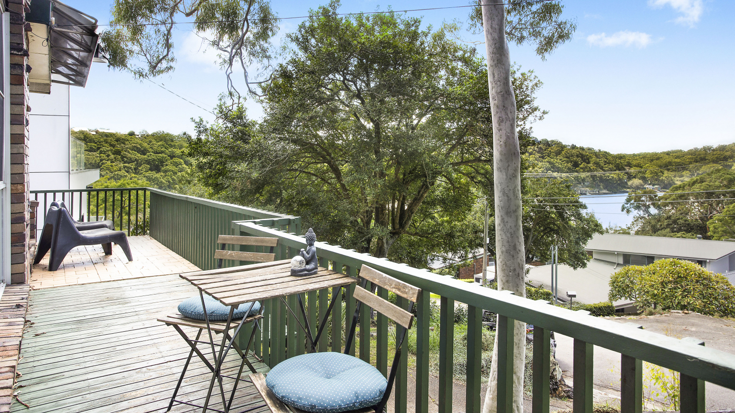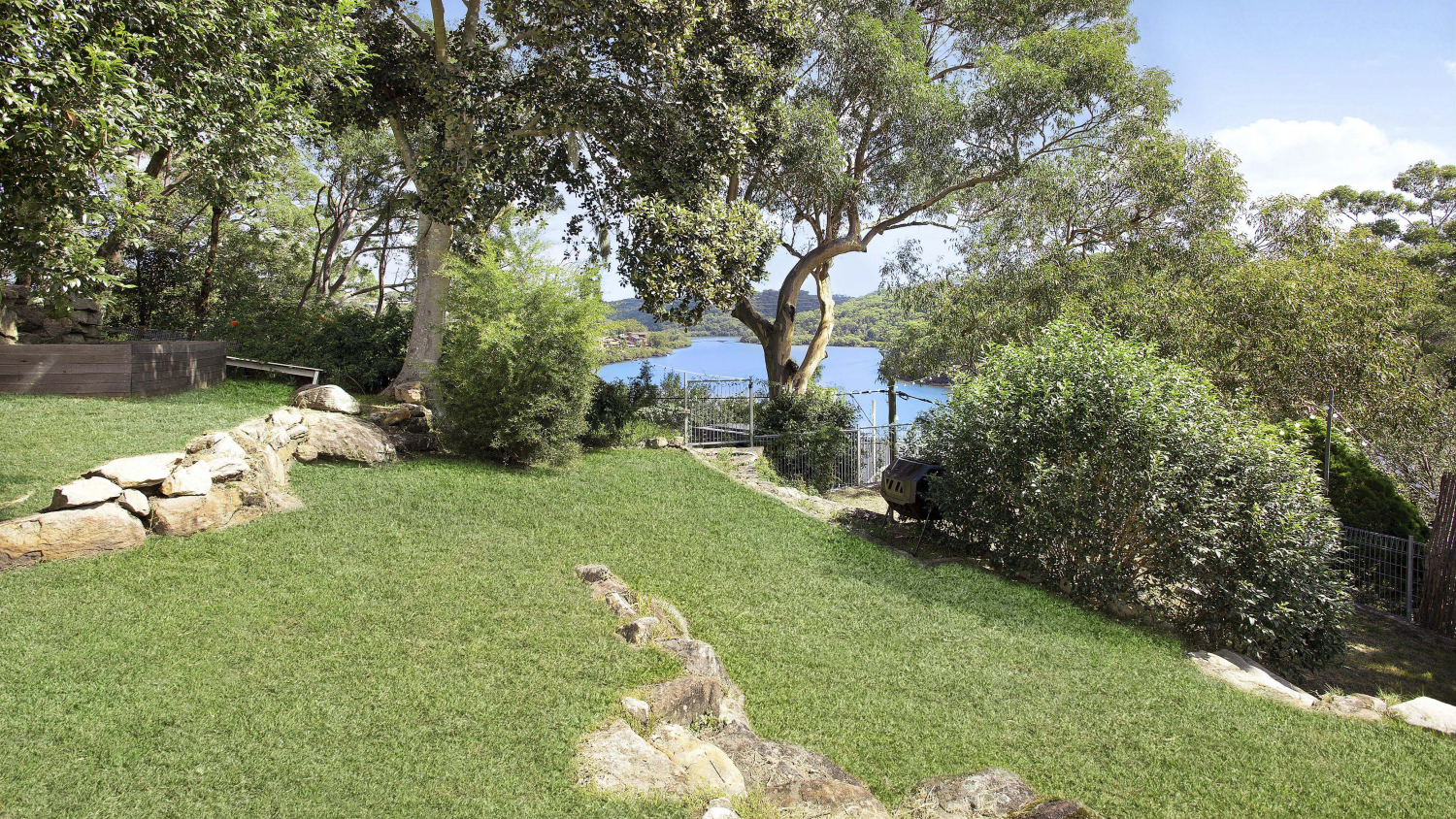 - Tiered grassed yard is framed by the water and bushland views, enviably indulging in relaxation from the natural surrounds