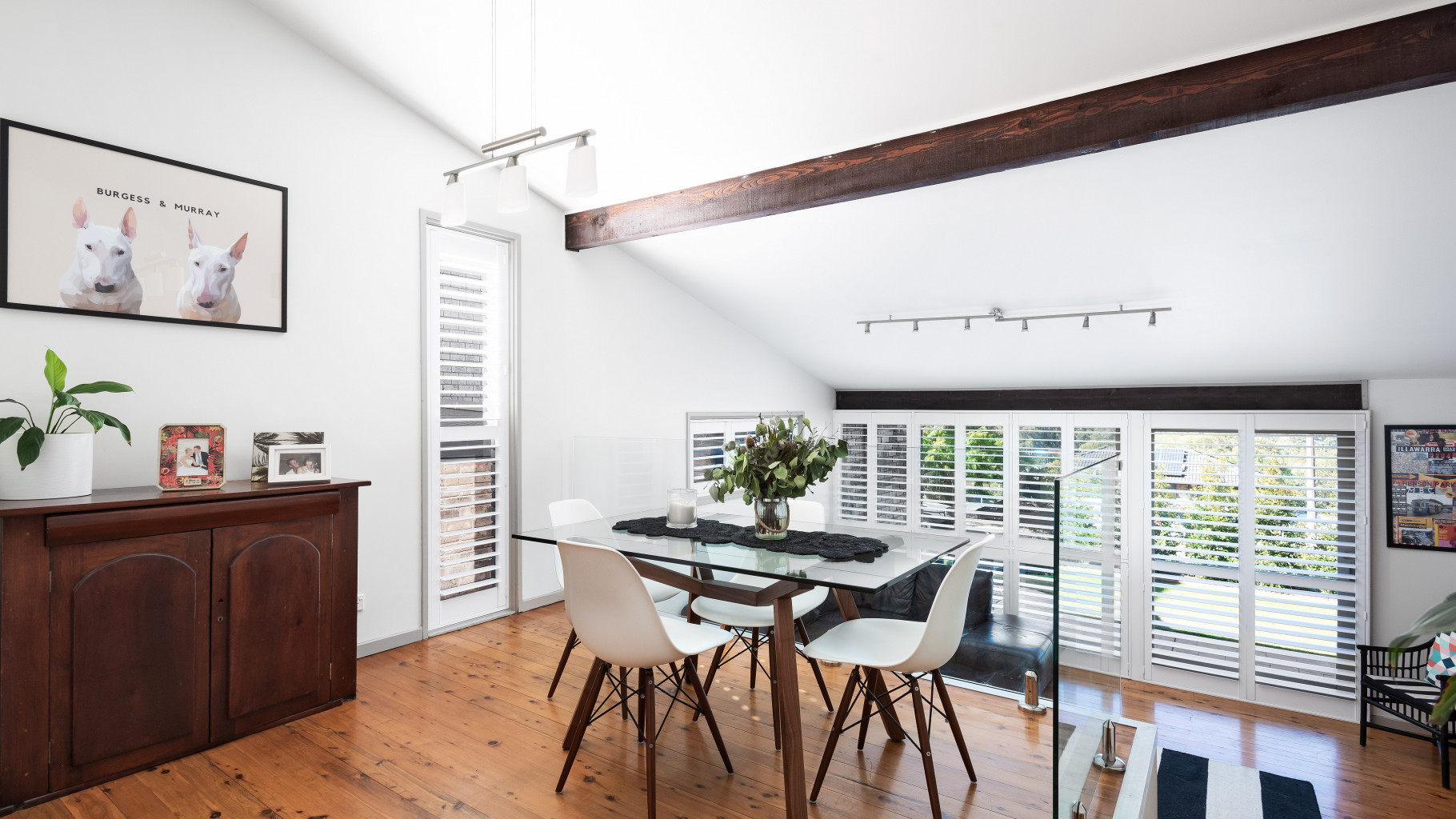 - Separate dining room with plantation shutters, beautiful high ceiling and timber floorboards