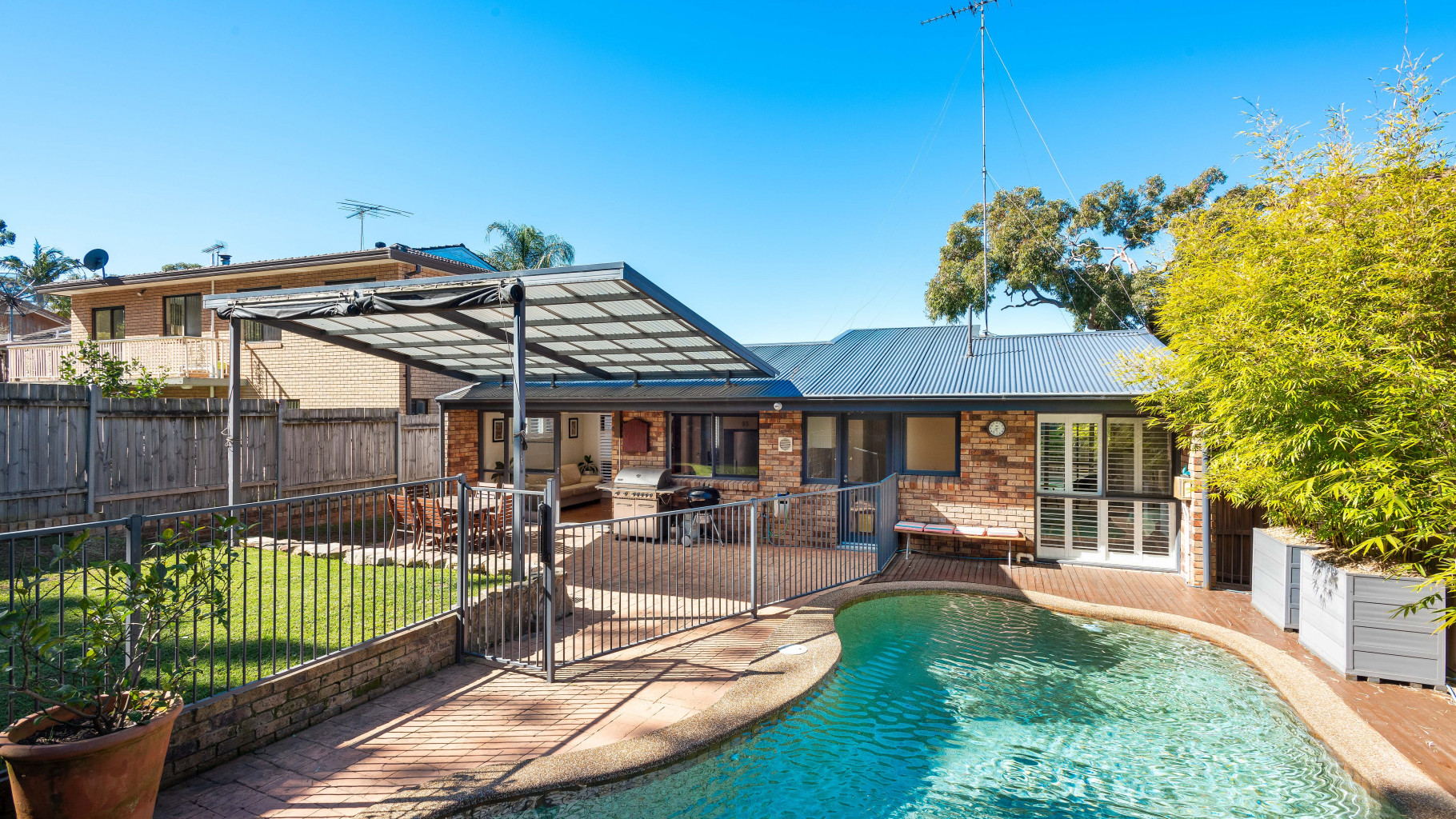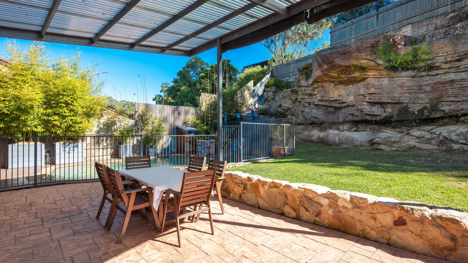 - Sunny, private and peaceful fully fenced level grassed yard with covered paved entertaining area, fully fenced in ground pool with water feature, decking and paved surrounds, perfect for kids and pets