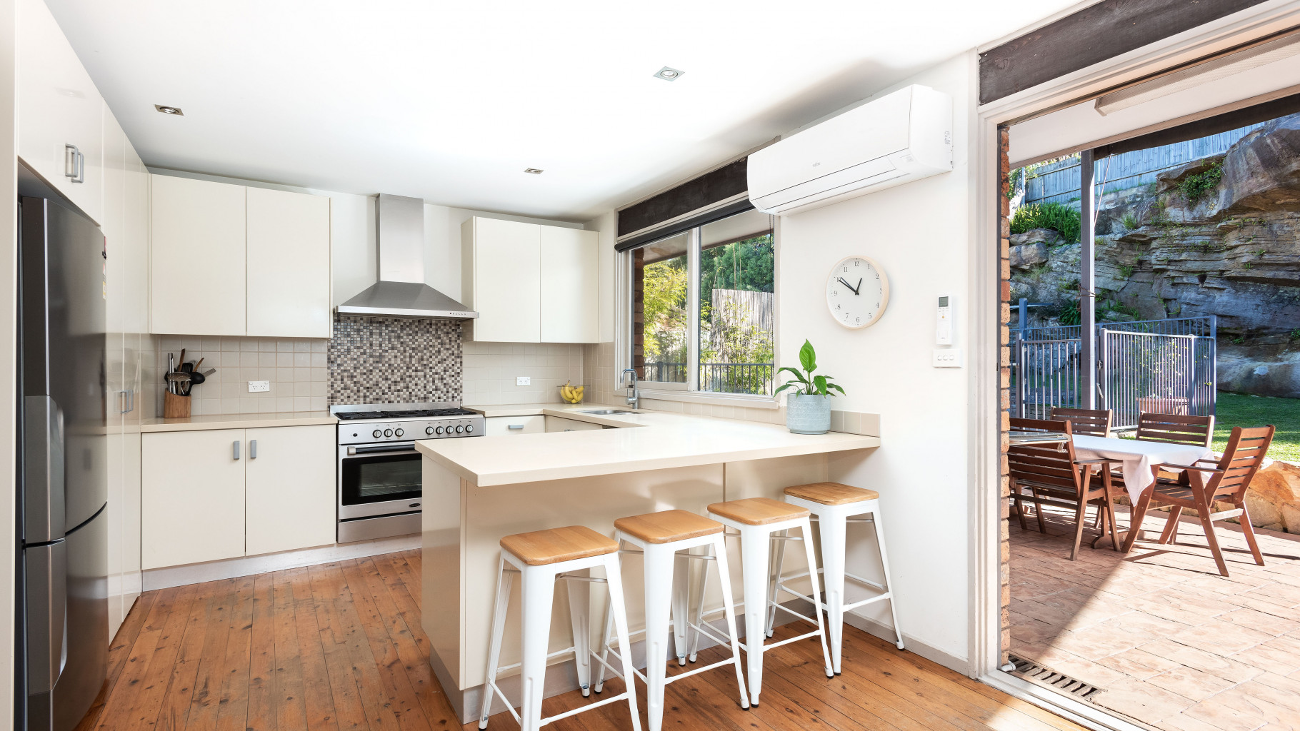 - Three light filled bedrooms, all with plantation shutters and mirrored built in wardrobes. Air conditioned main bedroom opens to private courtyard