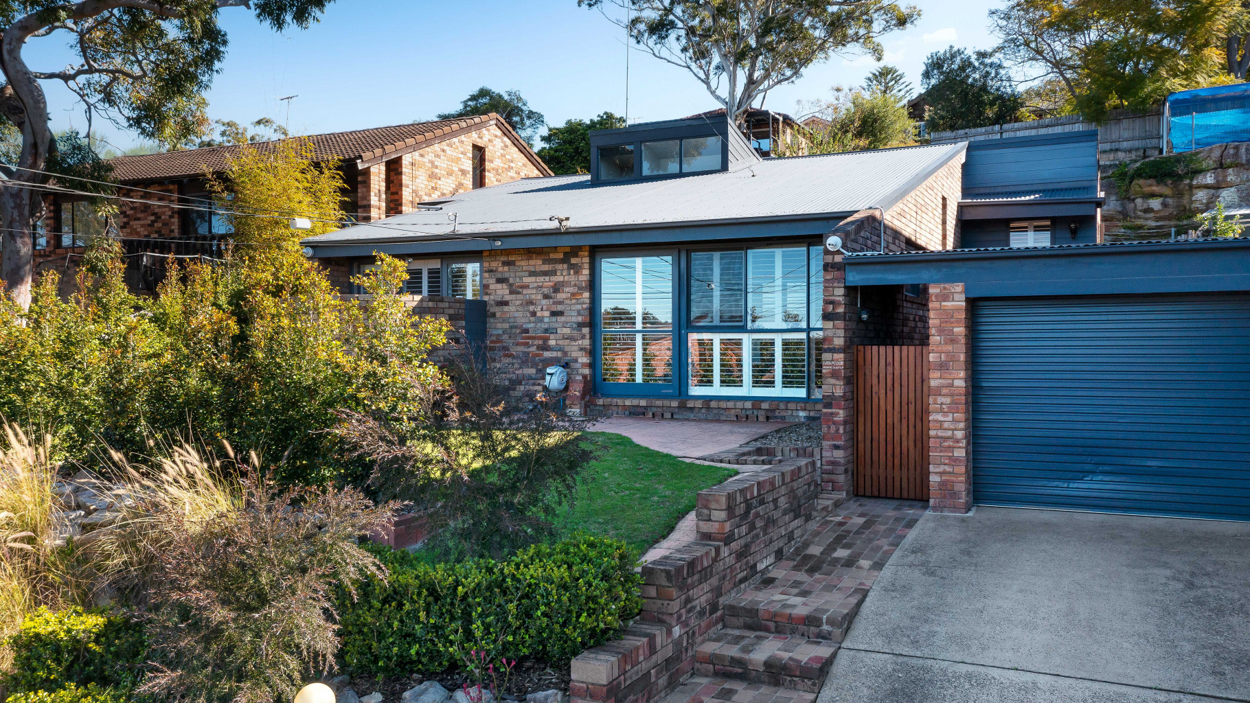- Beautifully manicured front gardens surround the level lawn, offering privacy and tranquility