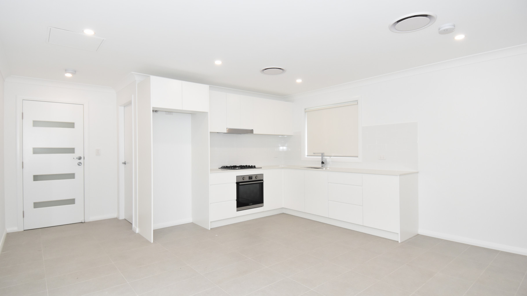- Modern kitchen with ample cupboard space, stone bench tops and gas cooking