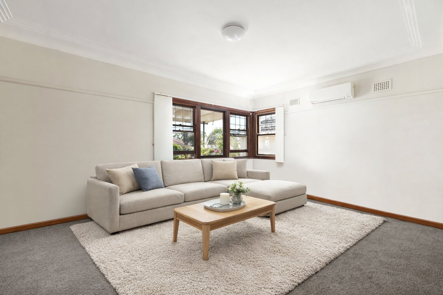 - Inviting living room with split system air-conditioning, complemented by a separate dining area