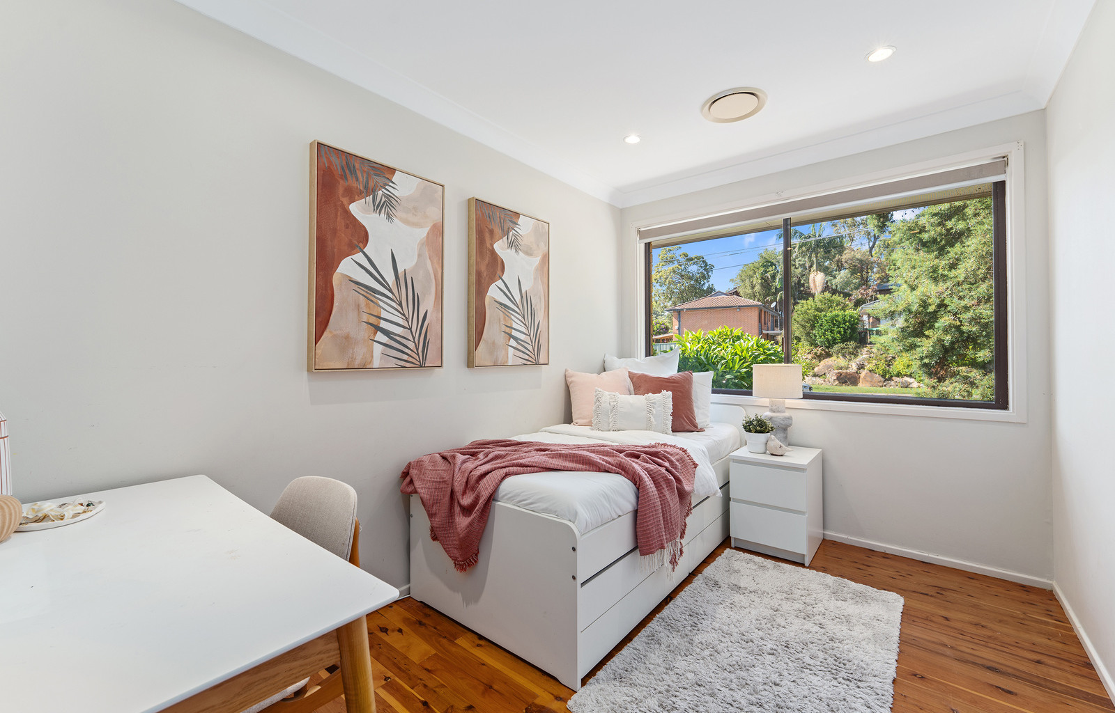 - Master bedroom complete with a built-in wardrobe, accompanied by three additional bedrooms featuring floorboards throughout
