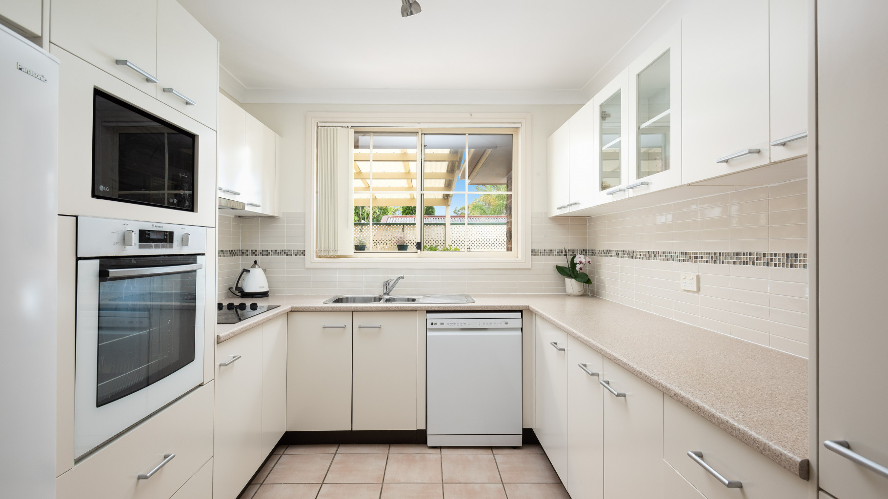 - Contemporary, spacious kitchen with ample storage and quality appliances.