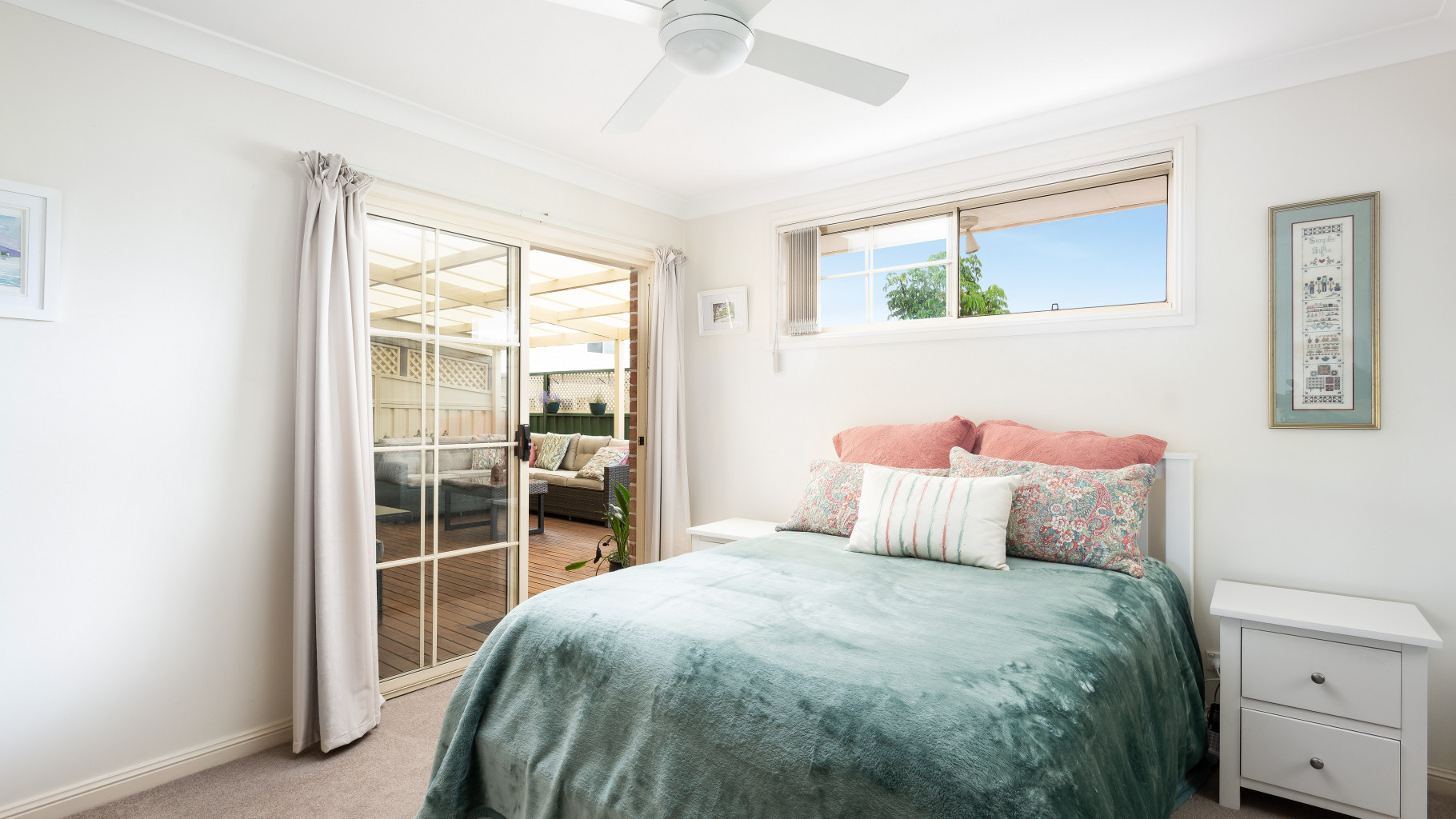 - Main bedroom features-built ins wardrobes, ceiling fan, ensuite and access out to alfresco area.