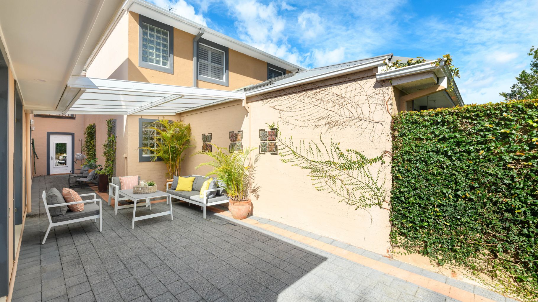 - Enjoy a level, beautifully landscaped yard with mature gardens forming a private and sunny retreat, seamlessly flowing to a covered, paved entertaining area bathed in a prized northern aspect.