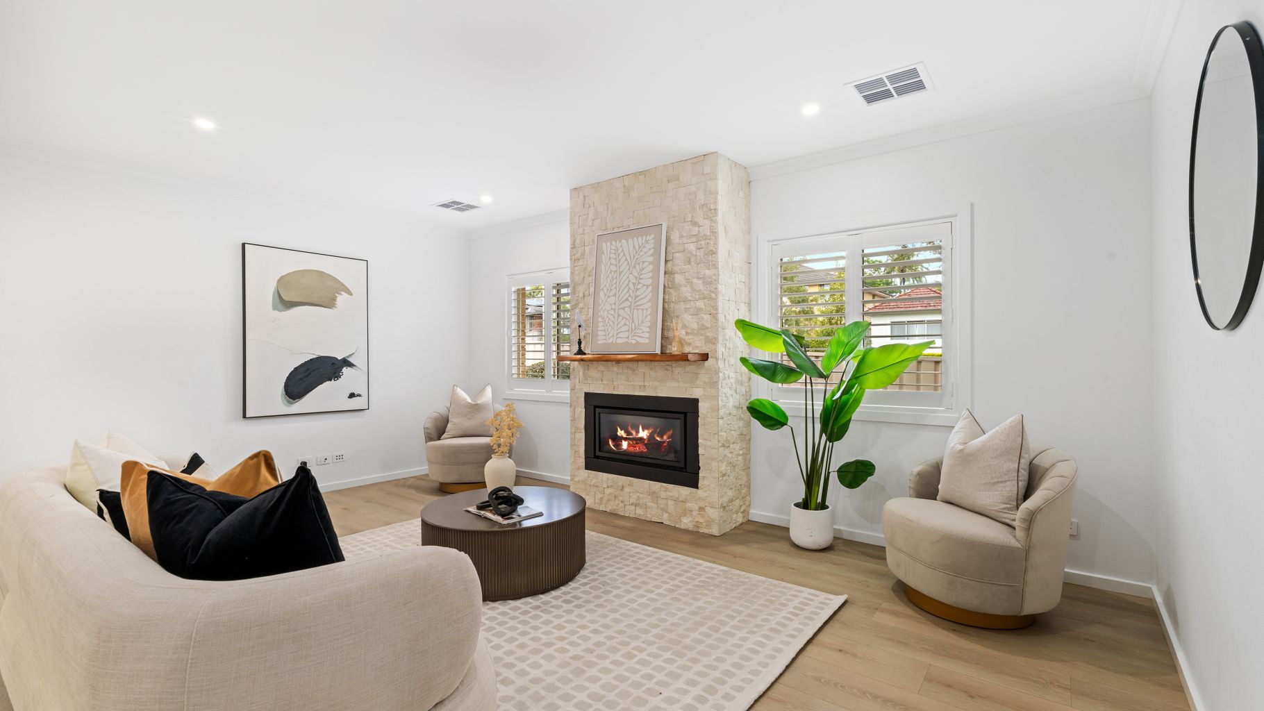 - Lounge room featuring a stylish gas fireplace