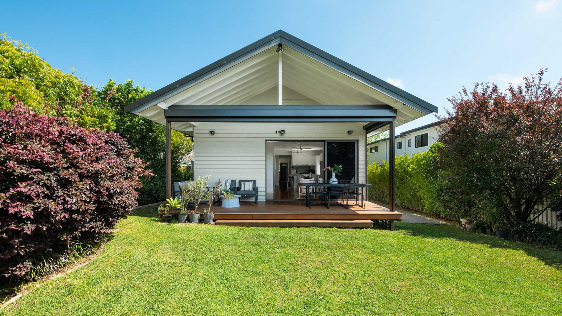 • Covered entertaining deck with automated blinds, overlooking sun-filled level lawns and framed by tall hedges for exceptional privacy