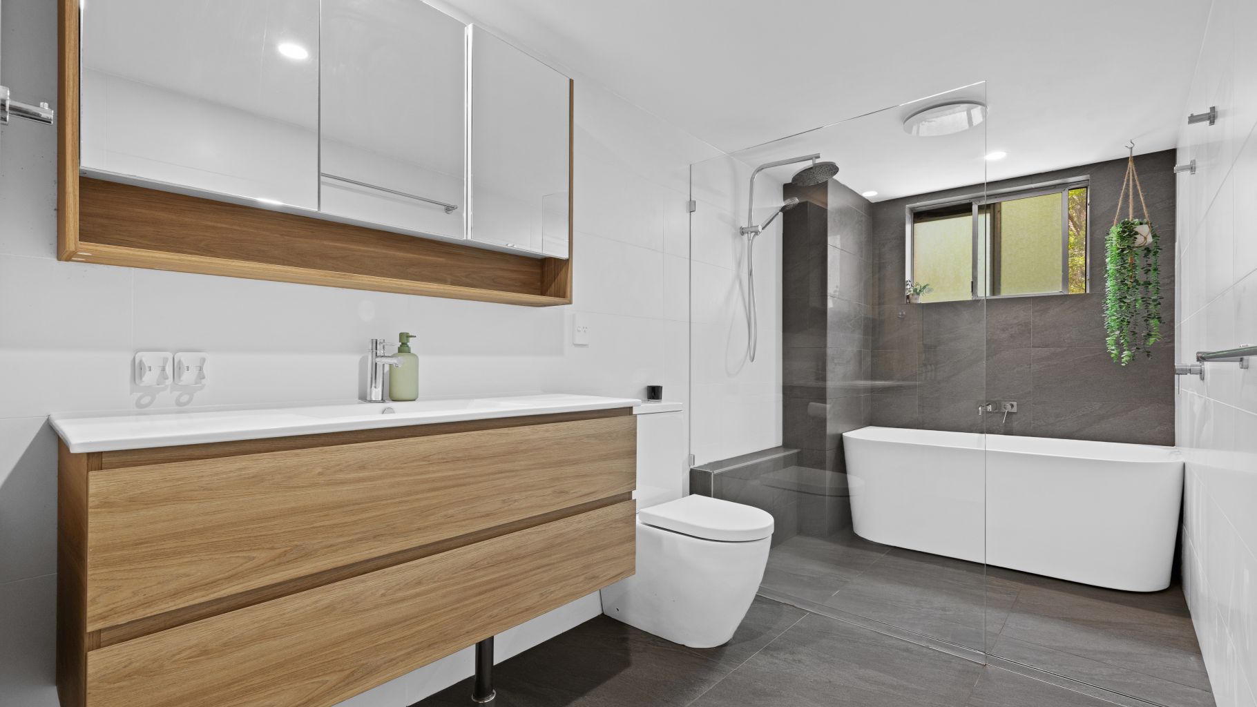 - Renovated bathroom with freestanding bath & rain shower