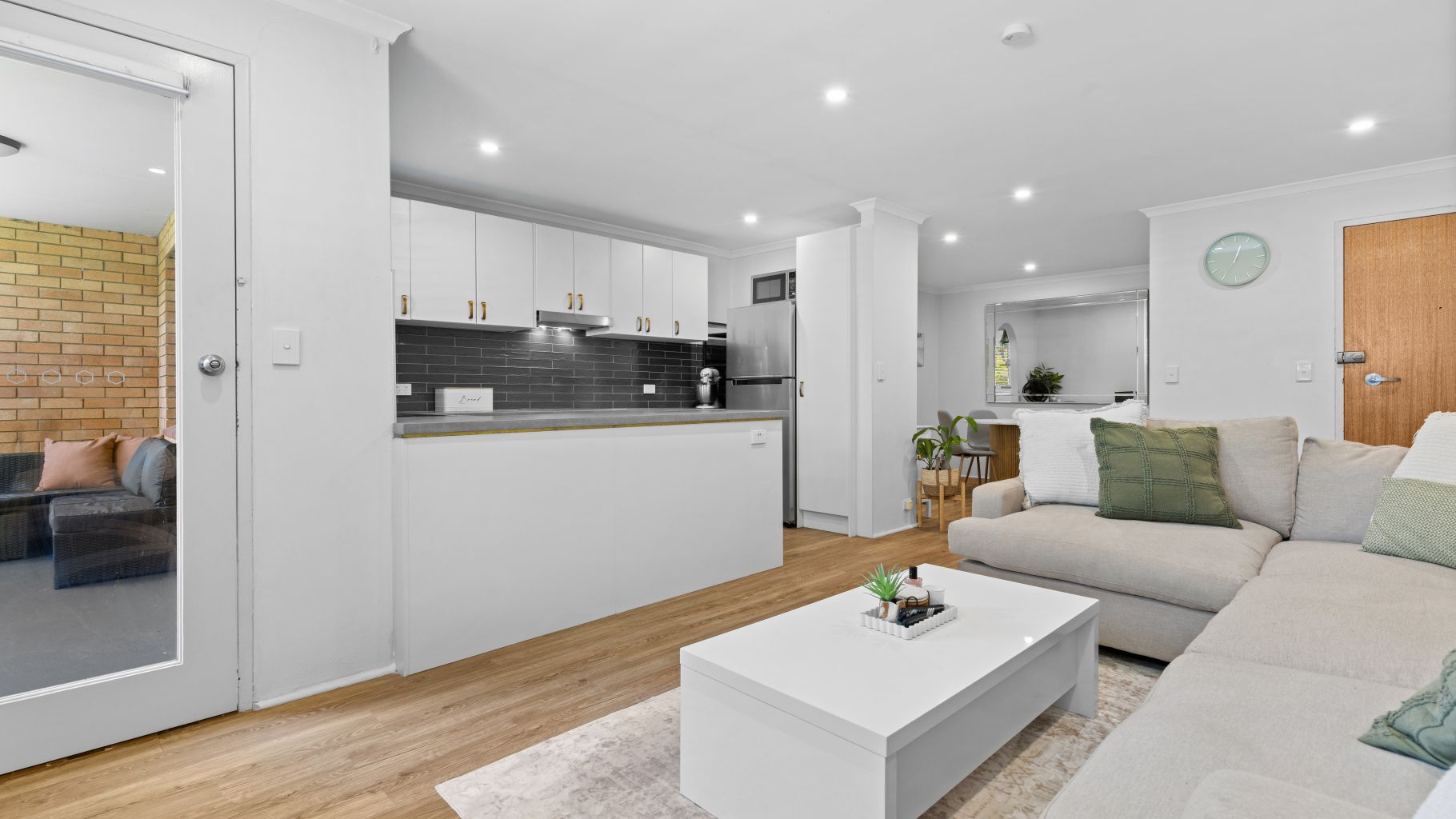 The beautifully updated kitchen boasting ample cabinetry and expansive bench space, designed to overlook the spacious living areas. The effortless flow from the lounge to your covered balcony makes indoor-outdoor living a breeze.