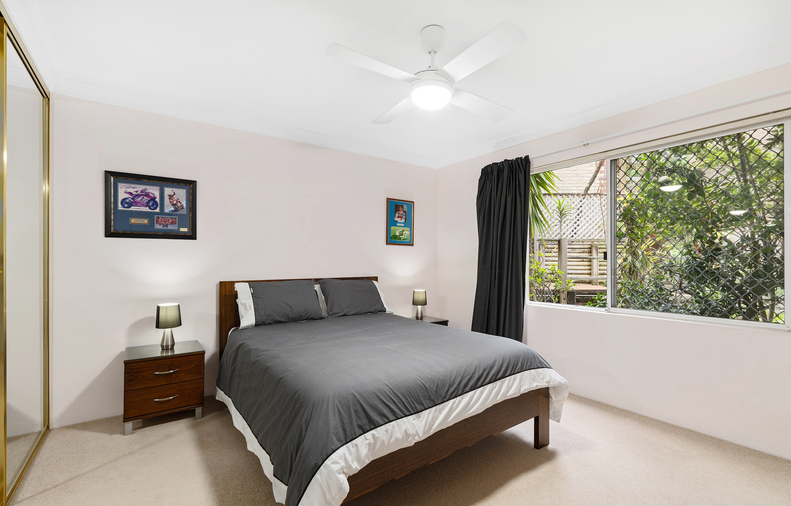 - Two generous bedrooms, both with built-in wardrobes; one complete with ceiling fan and both enhanced by large light-filled windows