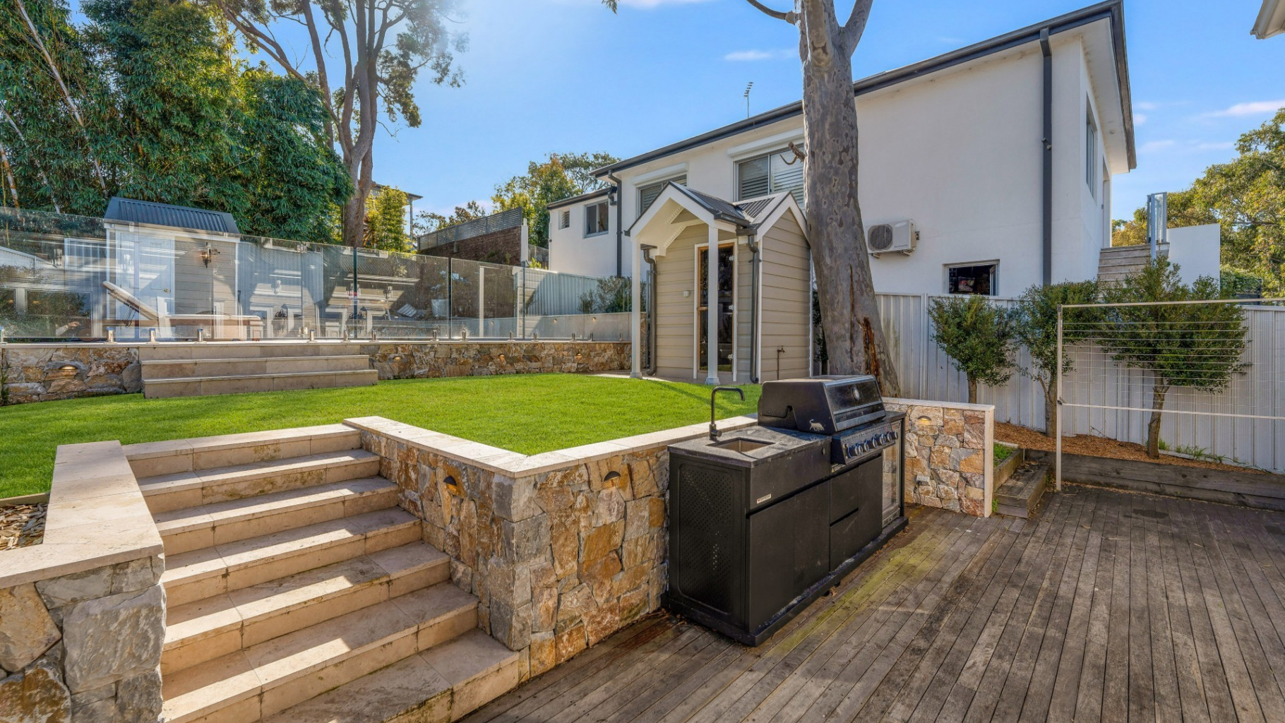 - Beautifully landscaped outdoor spaces offering private, resort-style retreat with sparkling swimming pool, spa, sauna, lush vibrant greenery, and inviting areas perfect for relaxed weekends and gatherings.
