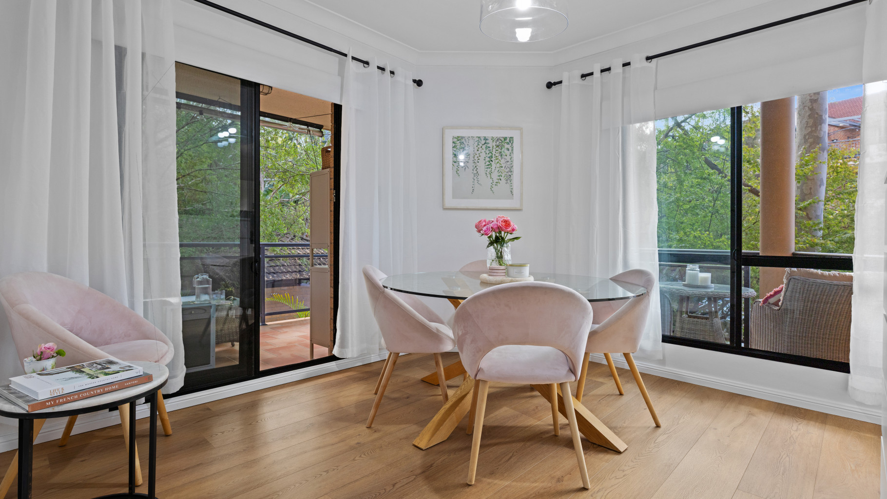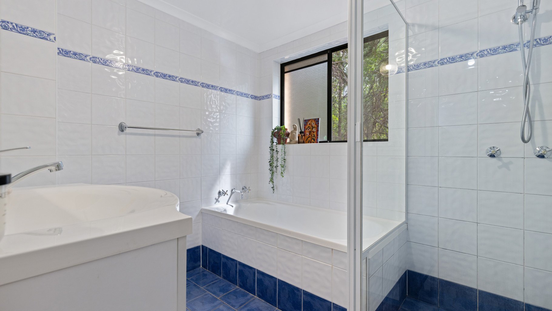 - Undercover balcony offers a sunlit entertaining space with a leafy backdrop