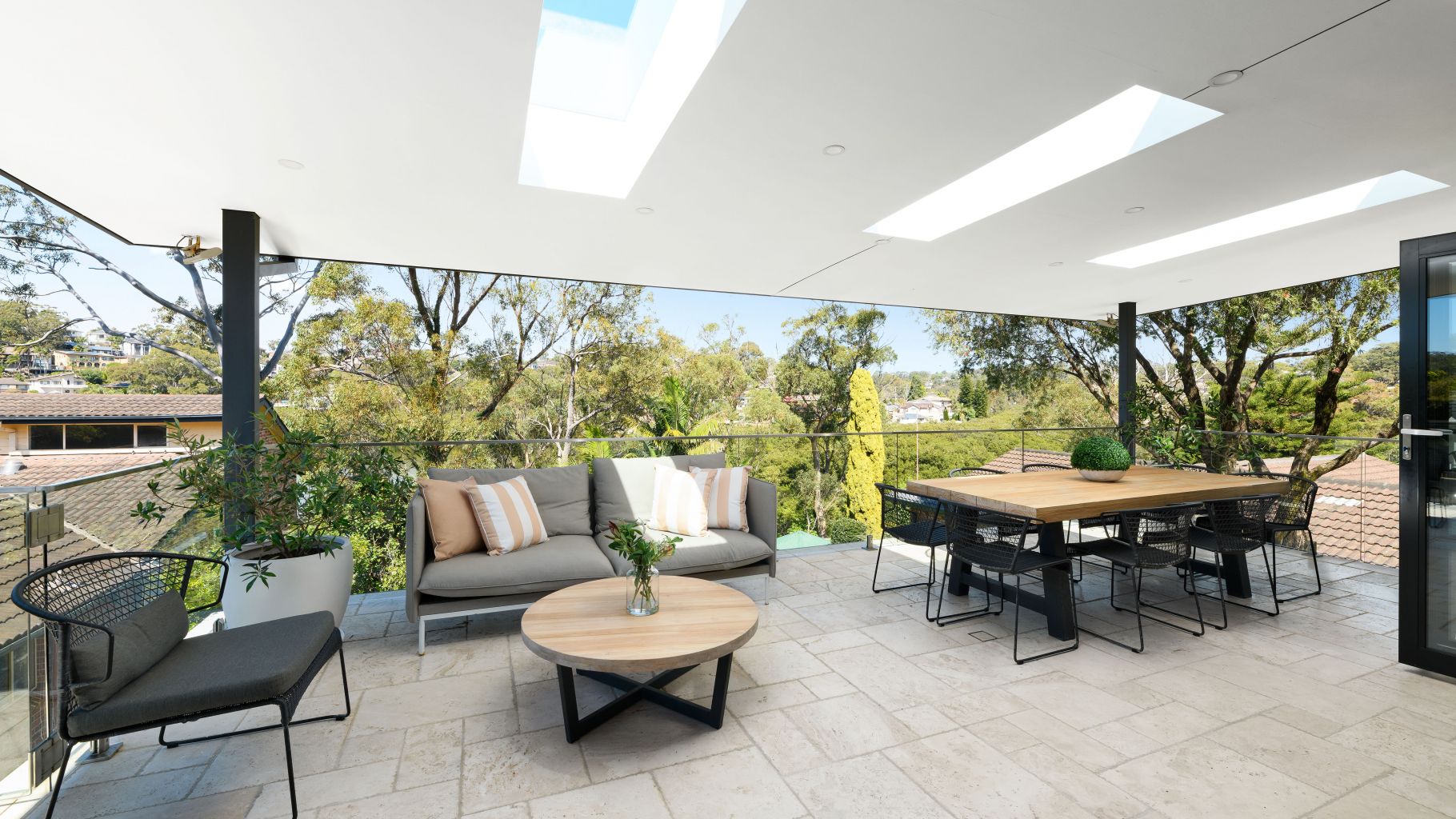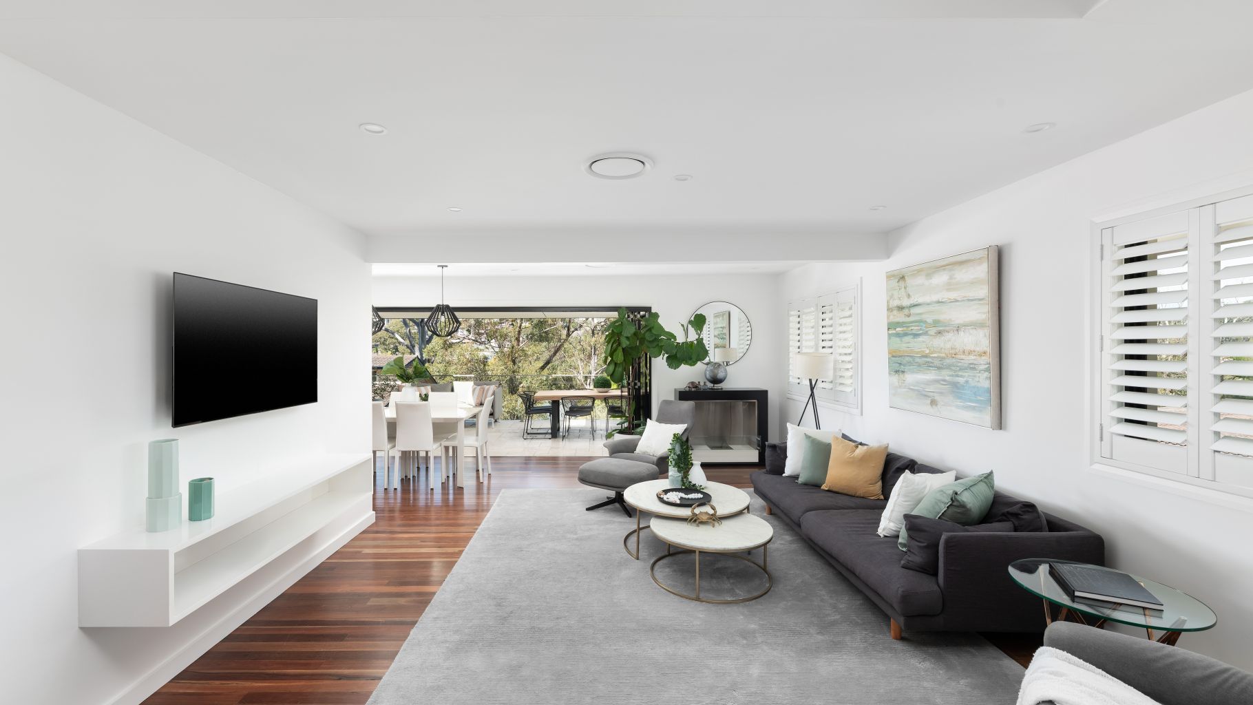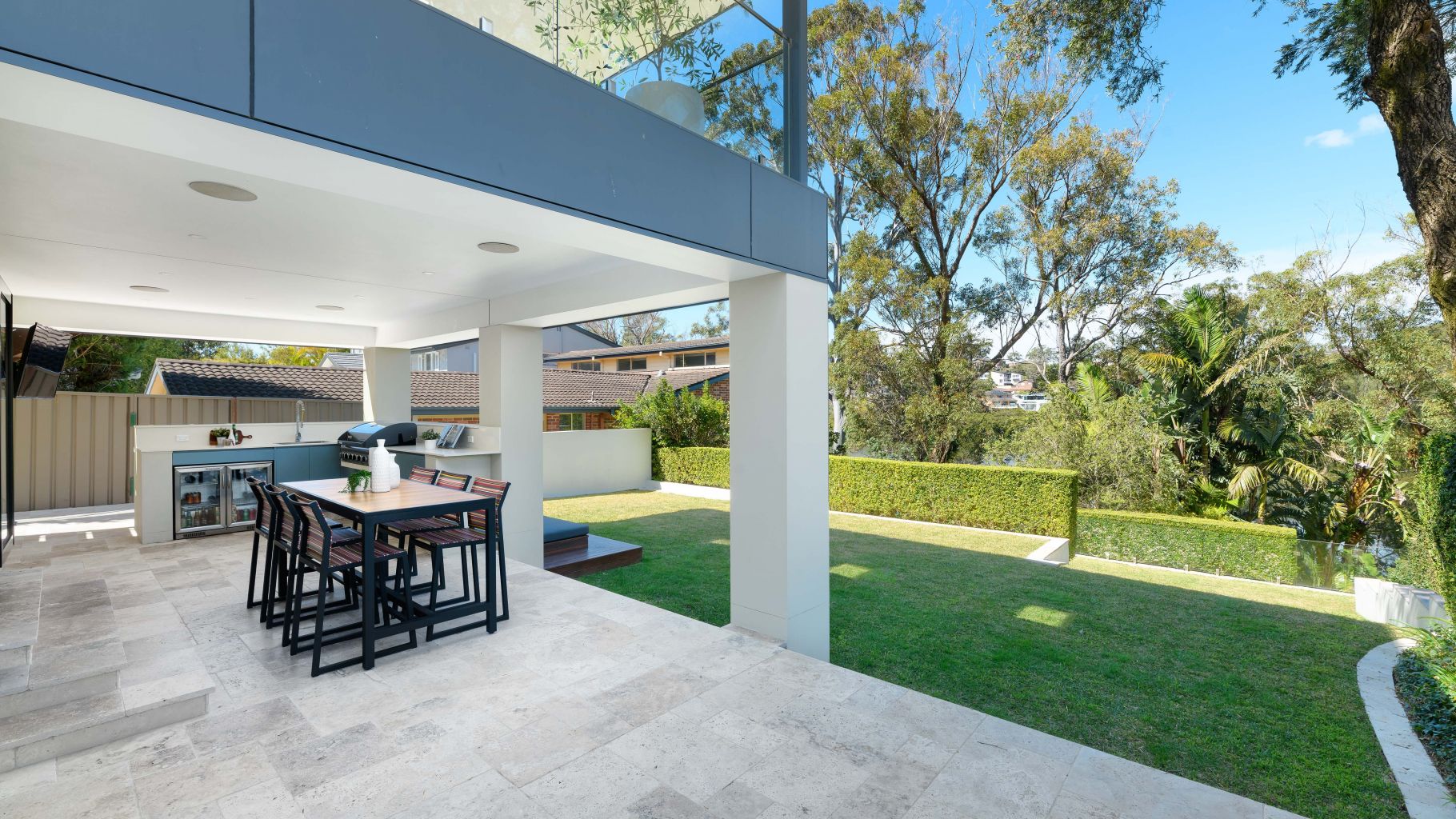 - The expansive open planned living zone, adorned with quality floorboards, seamlessly extends through bi-fold doors to a covered entertainer's balcony with skylights, capturing tranquil views of the water and leafy surrounds.