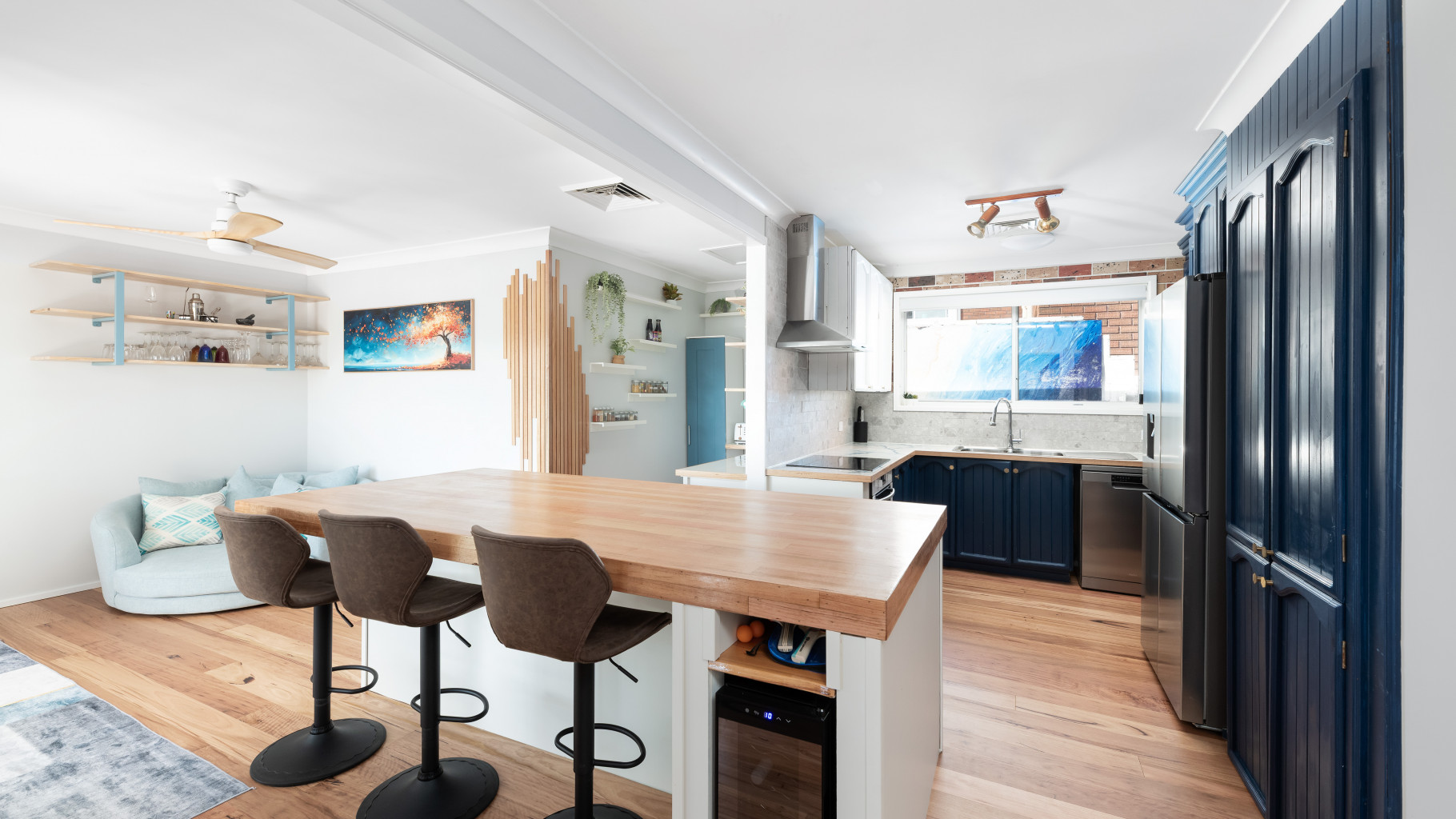 - Generous updated kitchen complete with serving bench, ample cupboard space, dishwasher and walk in pantry