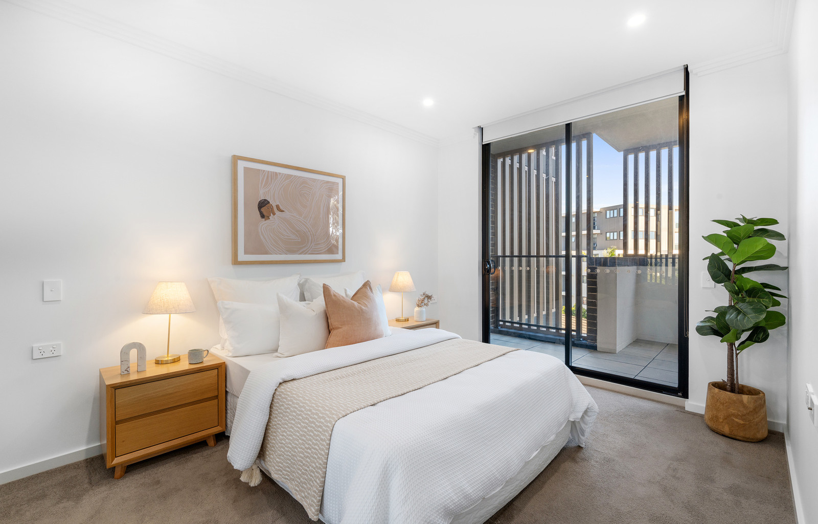 - Spacious master bedroom with built-in robe, private balcony access, and modern ensuite