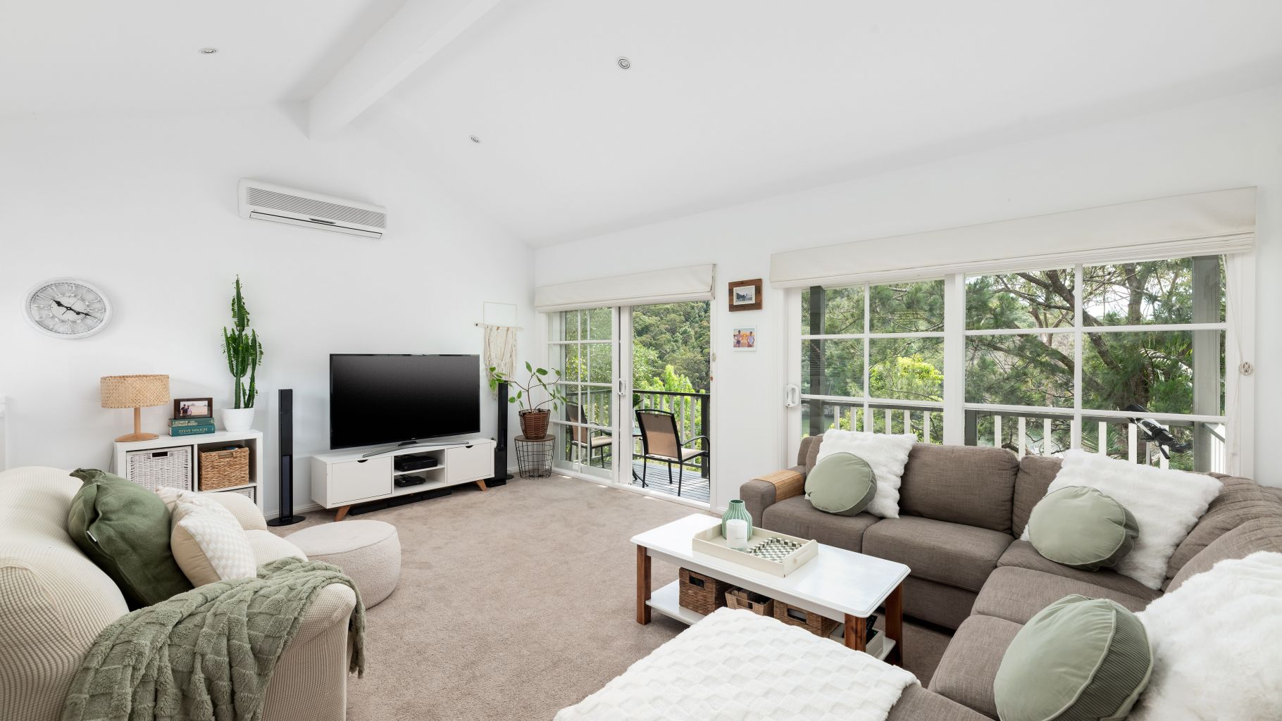 - A cozy family lounge offering tranquil bush valley and river views, seamlessly opening to a charming balcony, perfect for relaxing while soaking in the serene surroundings.