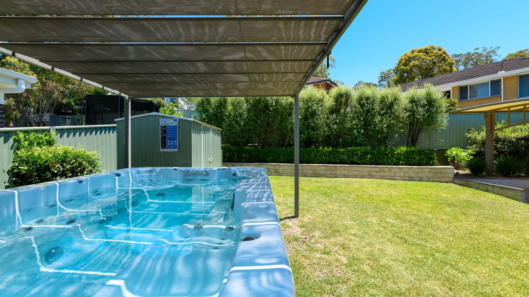 - West-facing backyard with undercover entertaining area, level grassed lawns, and a 10-seater spa