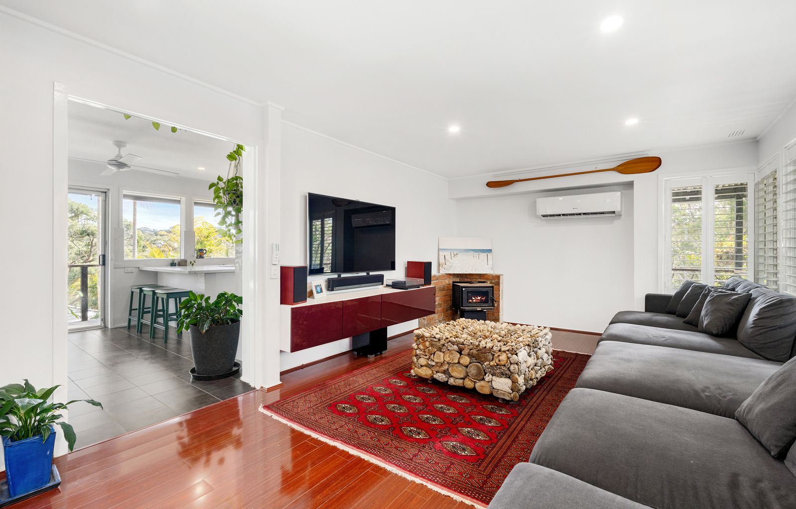 - Split air conditioning system in living room and master bedroom