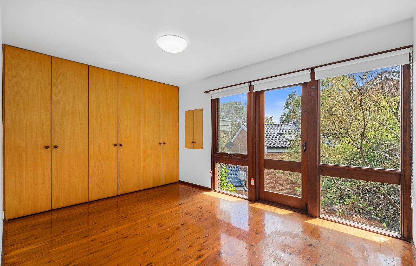 -Two Spacious Bedrooms, both filled with natural light, featuring floorboards. the main bedroom boasts a walk-in robe, while the second bedroom has a built-in wardrobe.