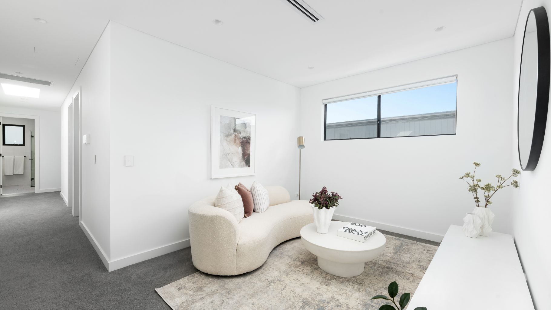 - Upstairs features four generous bedrooms with built-in wardrobes, roller blinds, and downlights, plus a second living area, while the lower level offers a versatile space ideal as a fifth bedroom, home office or media room.