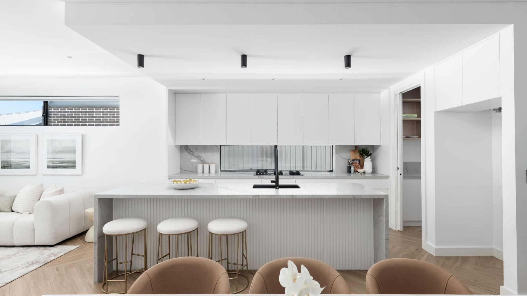 - Bespoke kitchen designed with double width stone benchtops and splashback, waterfall edge island featuring undermount sink, SMEG appliances including 900mm 5 burner gas cooktop, integrated dishwasher and microwave and a fully equipped butler's pantry.