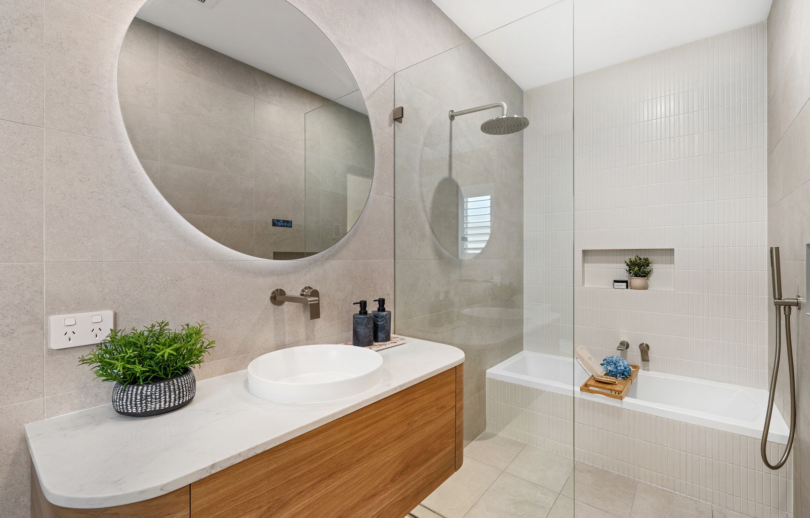 • complete with a private ensuite featuring a bath, large vanity, towel rack and underfloor heating