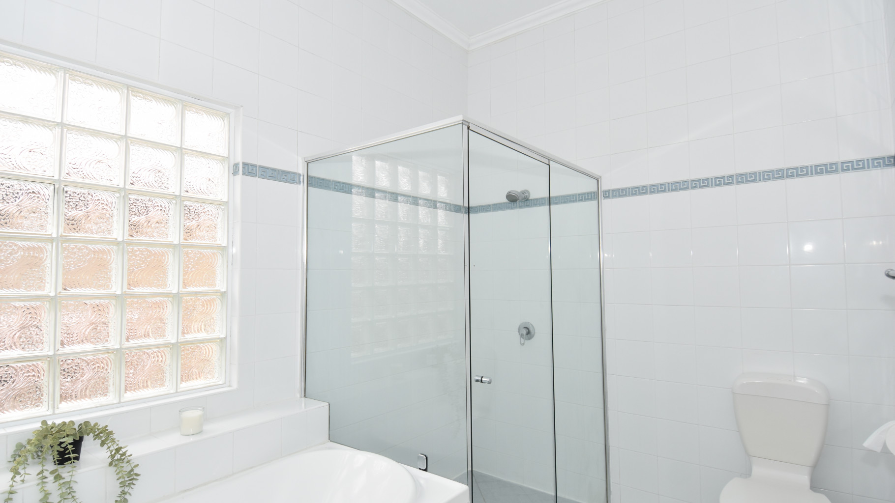 - Updated bathroom featuring a separate bathtub and double shower