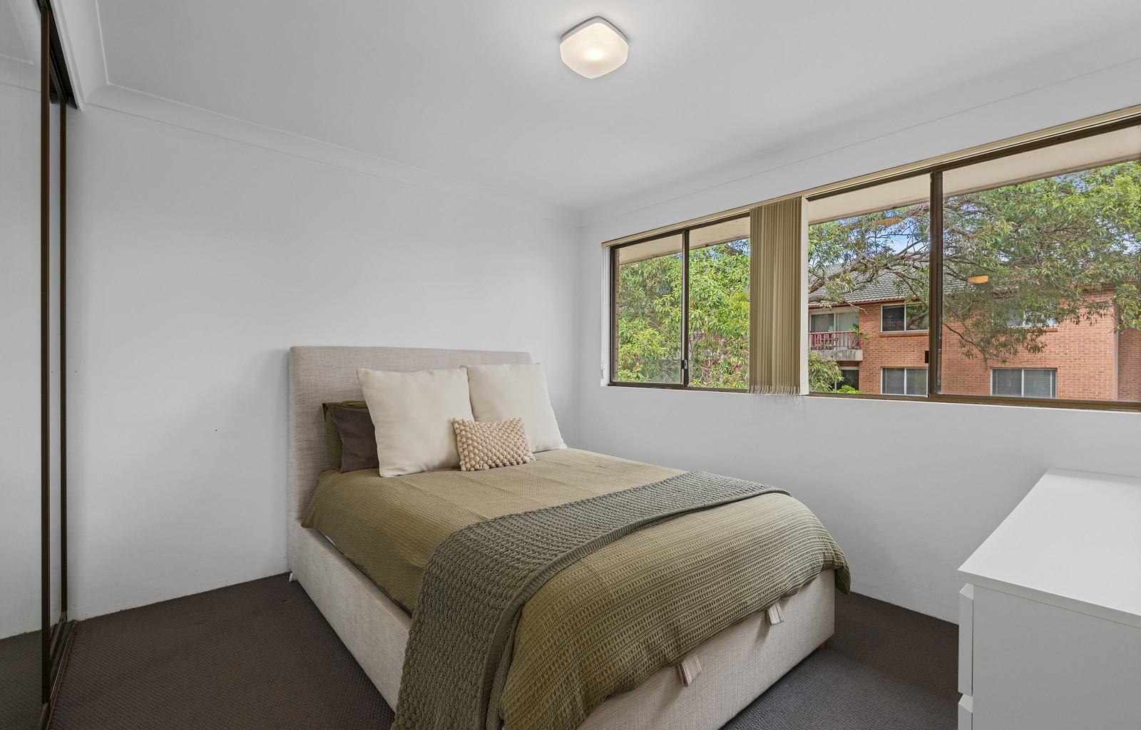 - Two generous bedrooms, main with a mirrored built-in wardrobe