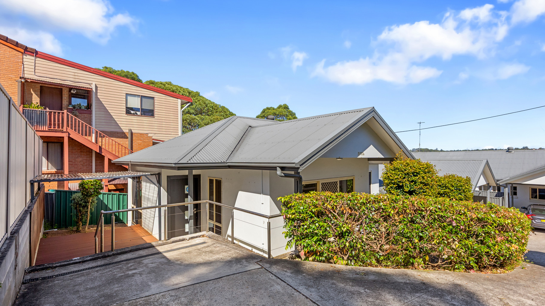 - Sunny courtyard featuring an undercover deck and clothesline