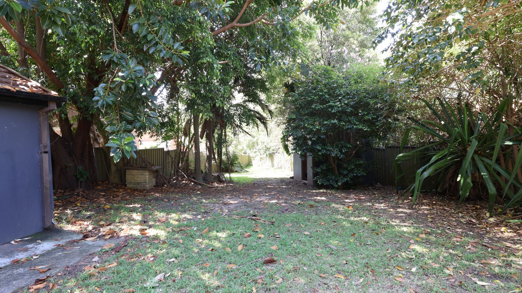 - Level, sunlit grassed yard In