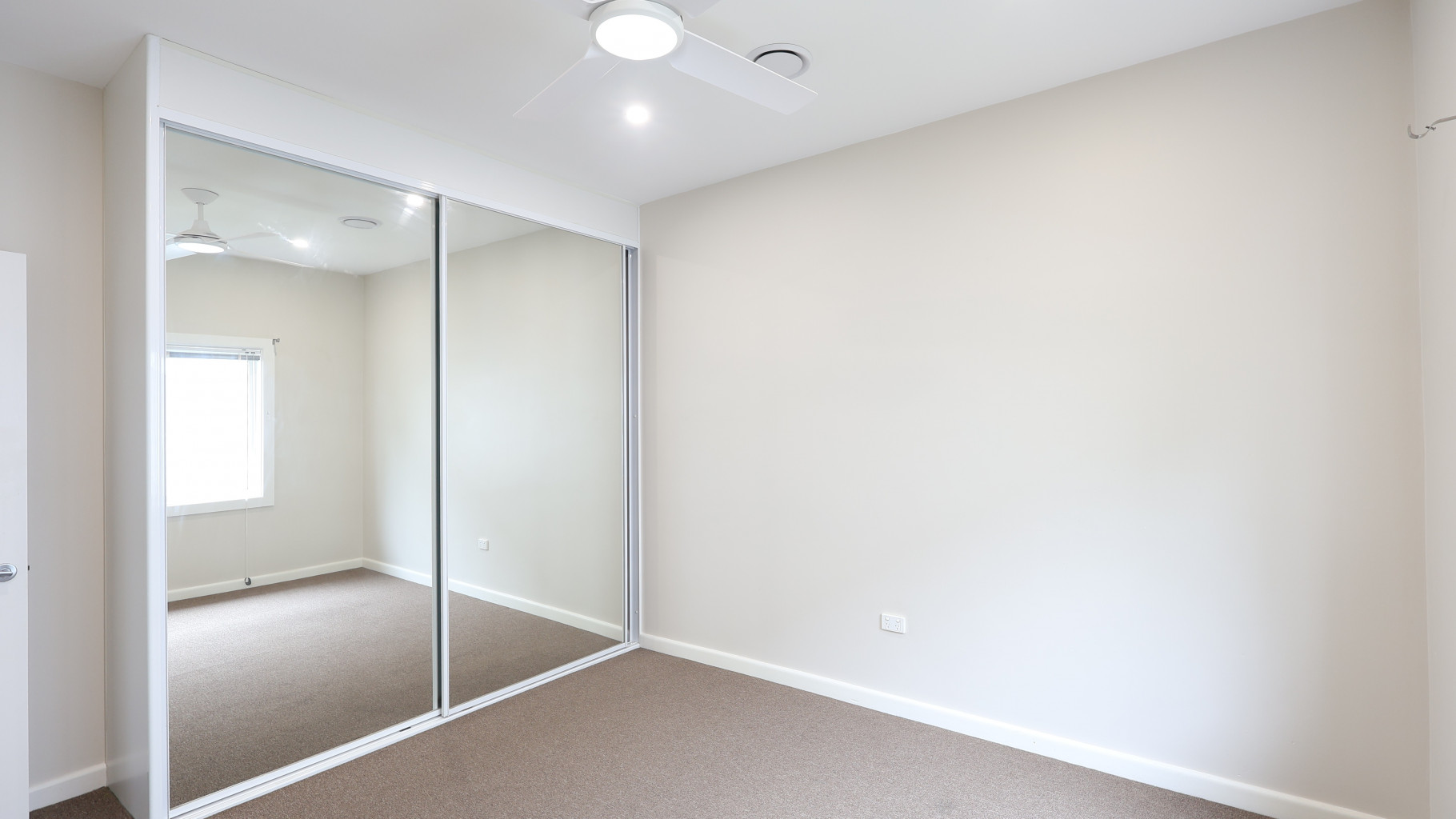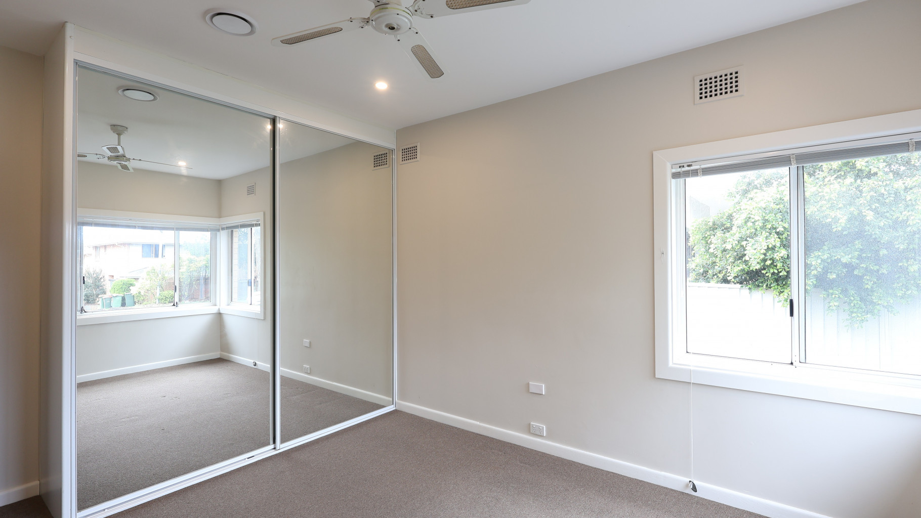 - Three well-sized bedrooms, all carpeted with mirrored built-in wardrobes