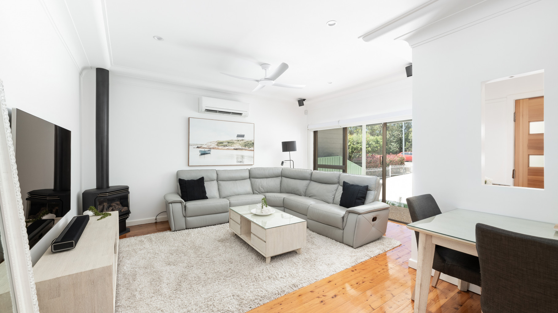 - Combined living area and enjoy year-round comfort with split air conditioning and a natural gas fireplace