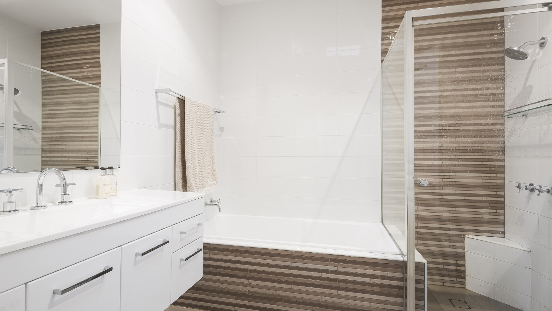 • Renovated bathroom with separate bath and shower