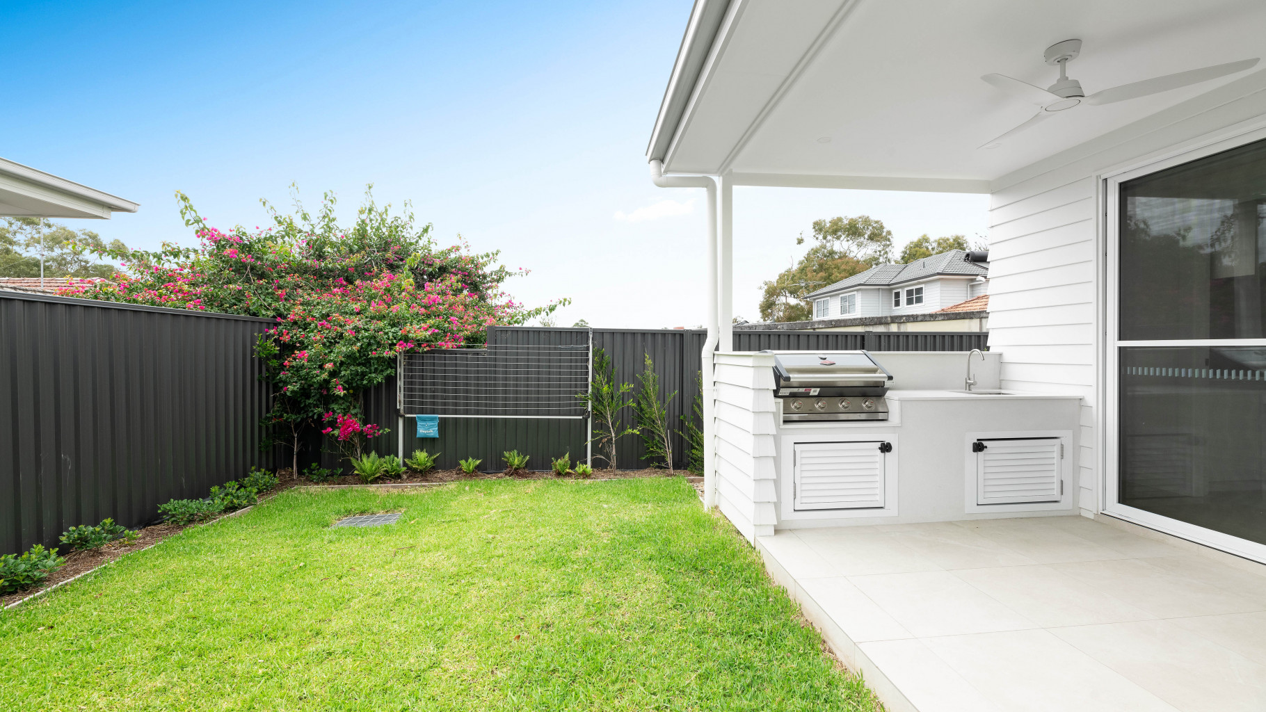 - Undercover entertaining area with outdoor kitchen and level grass yard