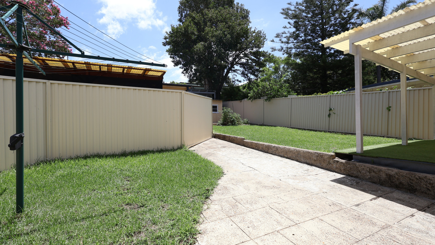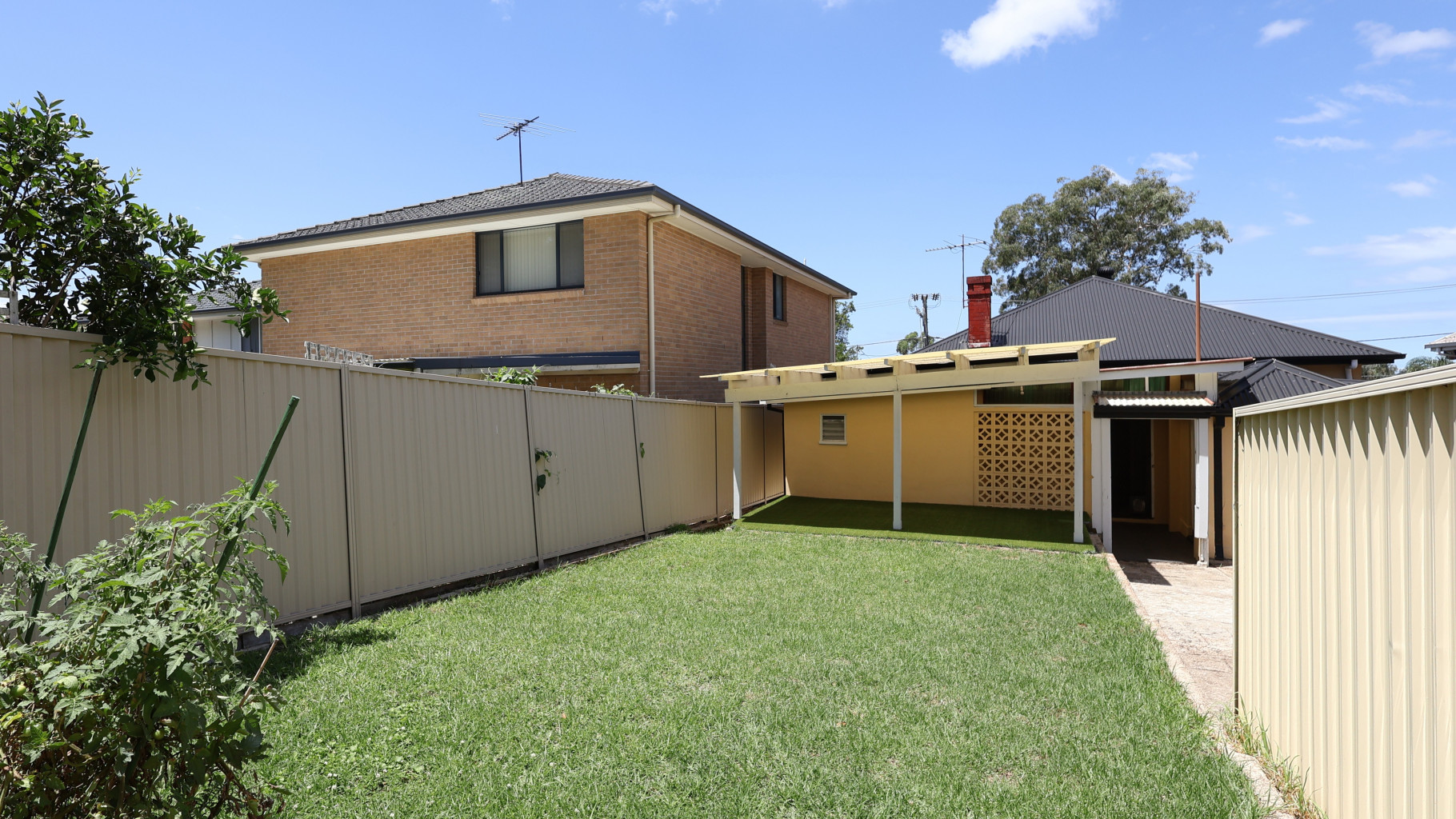 • Covered outdoor entertaining area overlooking a level, grassed backyard