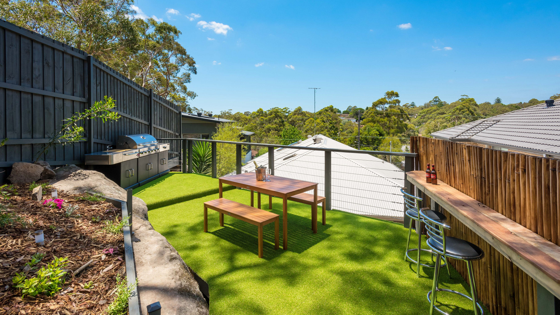 - Elevated barbeque area with views of the Carina Gully