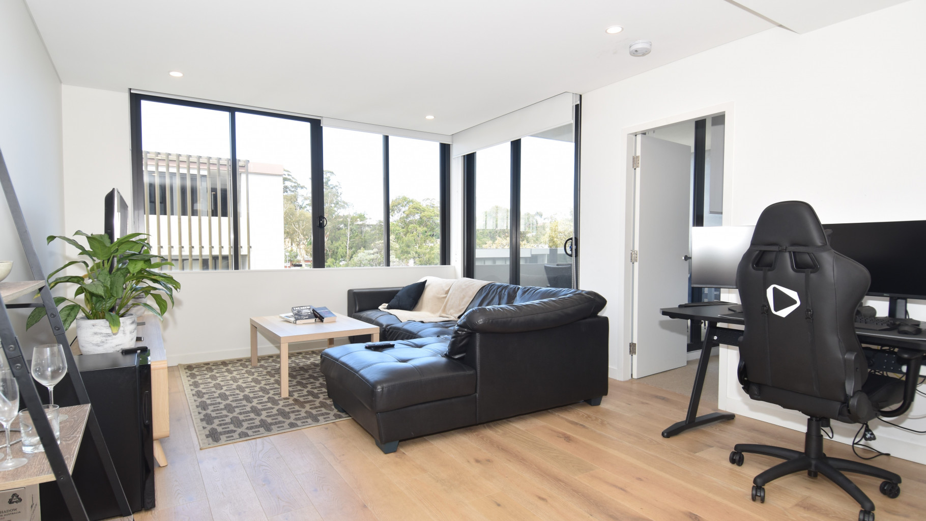 - Light-filled lounge and dining room features beautiful timber floors and sliding doors leading to the balcony